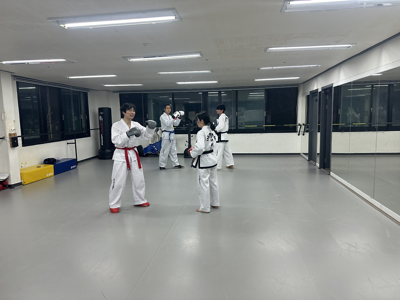 왼쪽 갈빗대가 아무래도 신경쓰이니 맞서기 연습도 깊게 들어갈수 없었다. 나는 오른손을 앞에 두는 왼손잡이 자세로 왼쪽 갈빗대를 조금이라도 숨기려.했는데 그새 둔해진 감각과 부자연스러운 자세 때문에 발이 땅에 딱 붙어서 제대로 움직일수가 없었다. 나같은 단신 선수는 빠르고 날렵하게 움직이며 다양한 기술로 치고 빠져야 하는데, 아직 갈 길이 멀다. 더 연습해야 한다!
