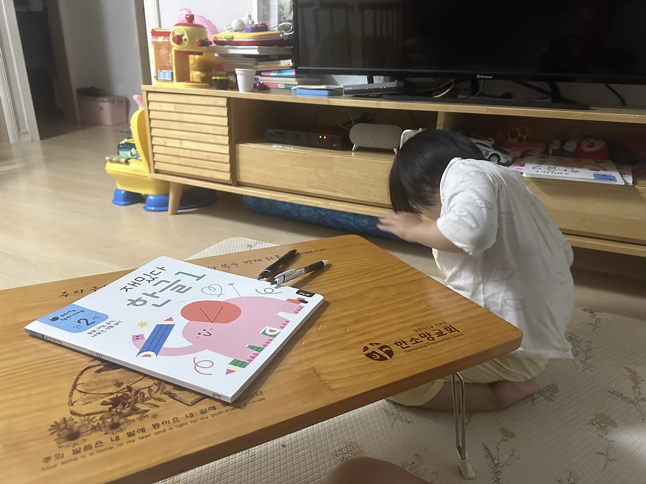 ㅡ 시간날때마다 소은이 한글 공부를 조금씩 봐주고 있다. 그래봐야 책 사서 함께 이십분도 길다. 소은이는 자음은 다 읽지만 모음은 좀 약해서 ㅣ 와 ㅑ 와 ㅗ 와 ㅜ ㅠ 를 구분하지 못하고 가나다 는 읽지만 그느드 기니디 고노도 는 모두 읽지 못한다. 5세 치고는 발음이나 문법도 여물지 못했고, 눈치와 행동이 빨라 뭐든 제가 직접 해버리는 편이다. 그래도 말이 늦게 튼 편치고는 상황설명을 잘하고 이야기하기도 좋아하여 고마운데, 글씨를 전혀 쓸 줄 모르니 제 애비 몇 자 쓸 때 함께 억지로 앉혀 읽고 쓰게 한다. 너가 늦은밤 쓰면 외워지느냐 물으니 그렇다고 하였다. 북한태권도 현황 논문도 읽어야하는데 낮밤이 분주하여 너무 짧다. 술 한 잔 마시기에도 충분치 않다.