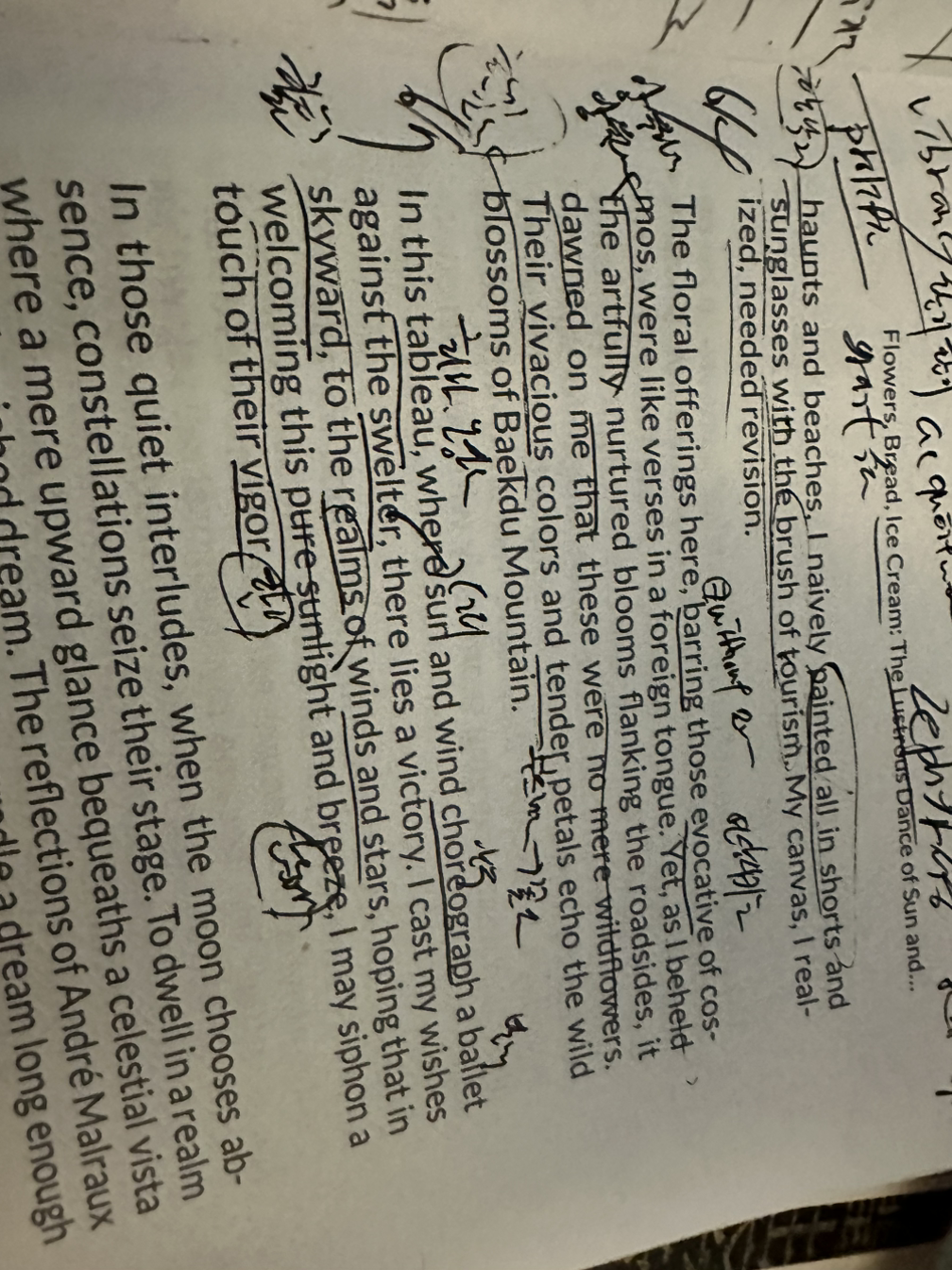 태양과 바람이 무더위를 배경으로 발레를 안무하는 이 타블로에는 승리가 있습니다. 저는 바람과 별들의 세계로 저의 소원을 하늘을 향해 던졌고, 이 순수한 햇빛과 바람을 맞으며 그들의 활기를 조금이라도 음미할 수 있기를 바랐습니다.