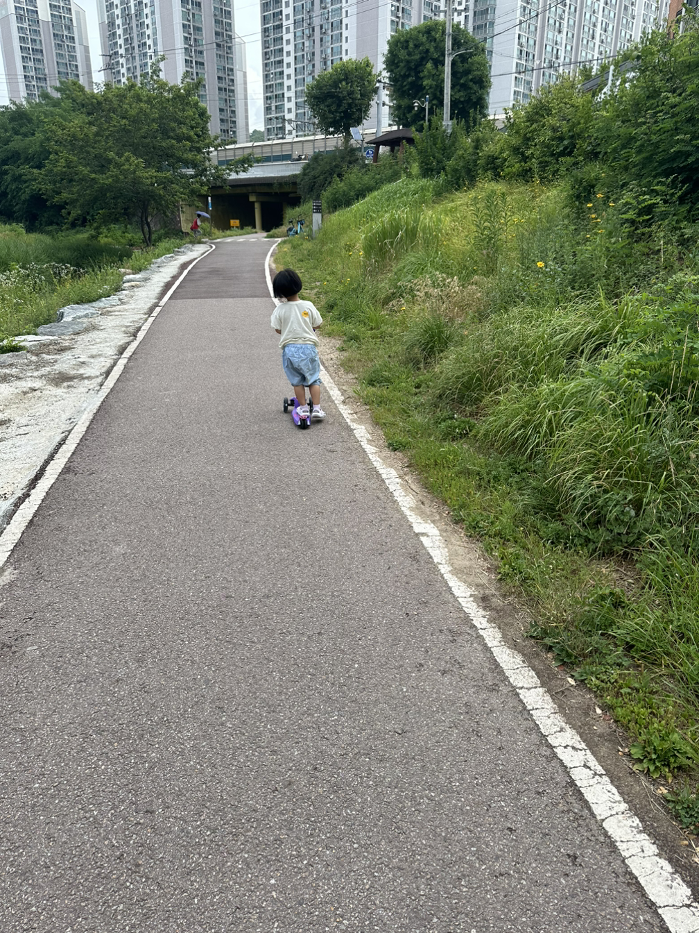 ㅡ 킥보드 하나 비껴타고 달려, 달려! 아빠는 출근 전부터 이미 체력 소진