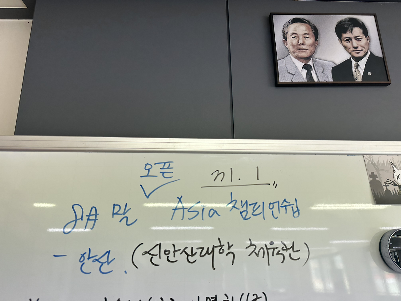 오랜만에 사현님 지도 아래, 앞발 무릎을 높이 들어 돌리면서 내리찍어 차면서, 다시 돌려차기 연습… 꽥.