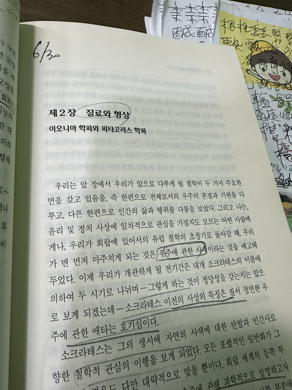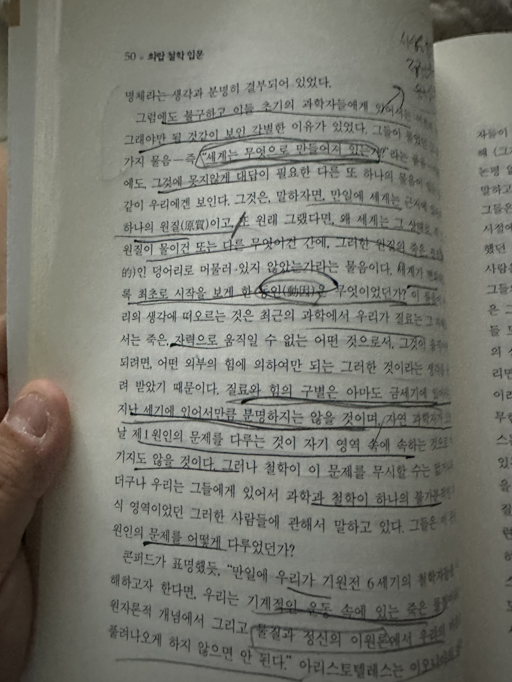 그러므로 세상의 근원을 따지던 서양 철학의 근본은, 그리스에서 가장 부유하고 번영하던 도시 밀레토스에서 논변하던 이오니아 학파가 주축이 되었다고 했다. 별 보다 구덩이에 빠졌지만, 한편으로는 날씨를 예측하고 물가의 변동으로 올리브 가격을 조절해 철학도 돈을 벌 수 있음을 몸소 증명한 탈레스는 물이 곧 세상의 근원이라 했고, 아낙시만드로스는 덥고 차고 마르고 습한 온냉건습의 대립이 세상의 근원이라 했으며 (동양의 리기, 혹은 음양론이 생각나는 대목이다,) 아낙시메네스는 공기의 농도가 곧 세상의 근원이라 했다. 사실 물도, 온도도, 공기도 살아 있는 것들의 필수이니 무엇 하나 빠질수 없으며 고대 과학자이자 철학자들에게 충분한 근거가 되었을 터이다.