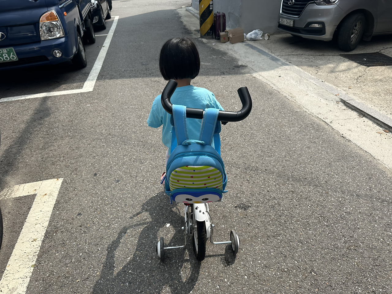 2. 아침 식사 후 소은이와 놀기 ㅡ 자전거를 꽤 잘 타고, 철없는 (?) 어린 오빠들에게 의젓하게 양보도 잘한다.