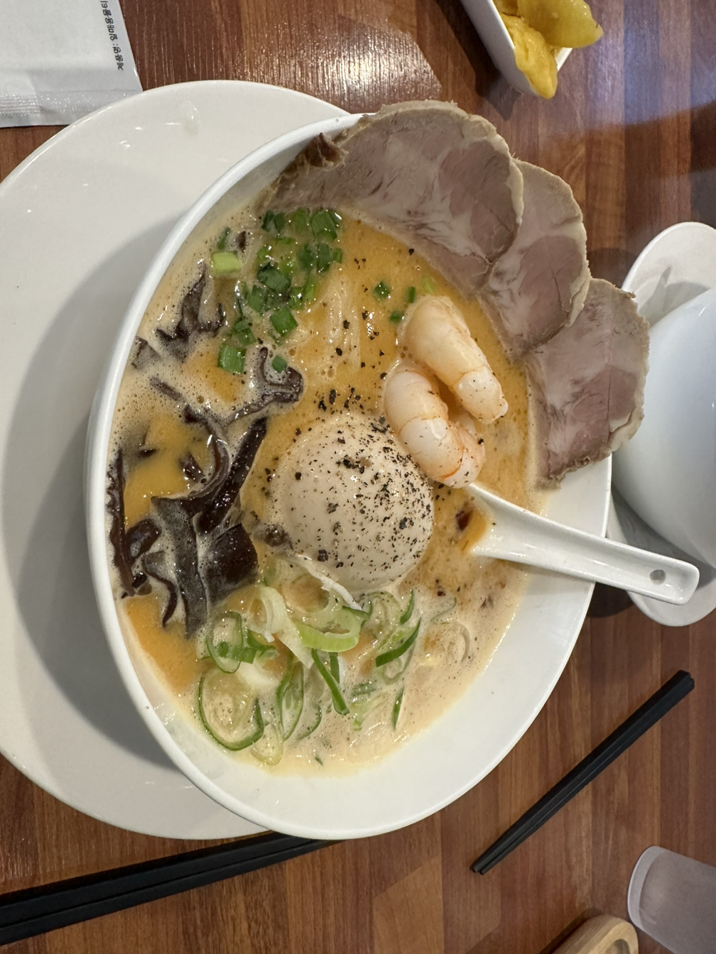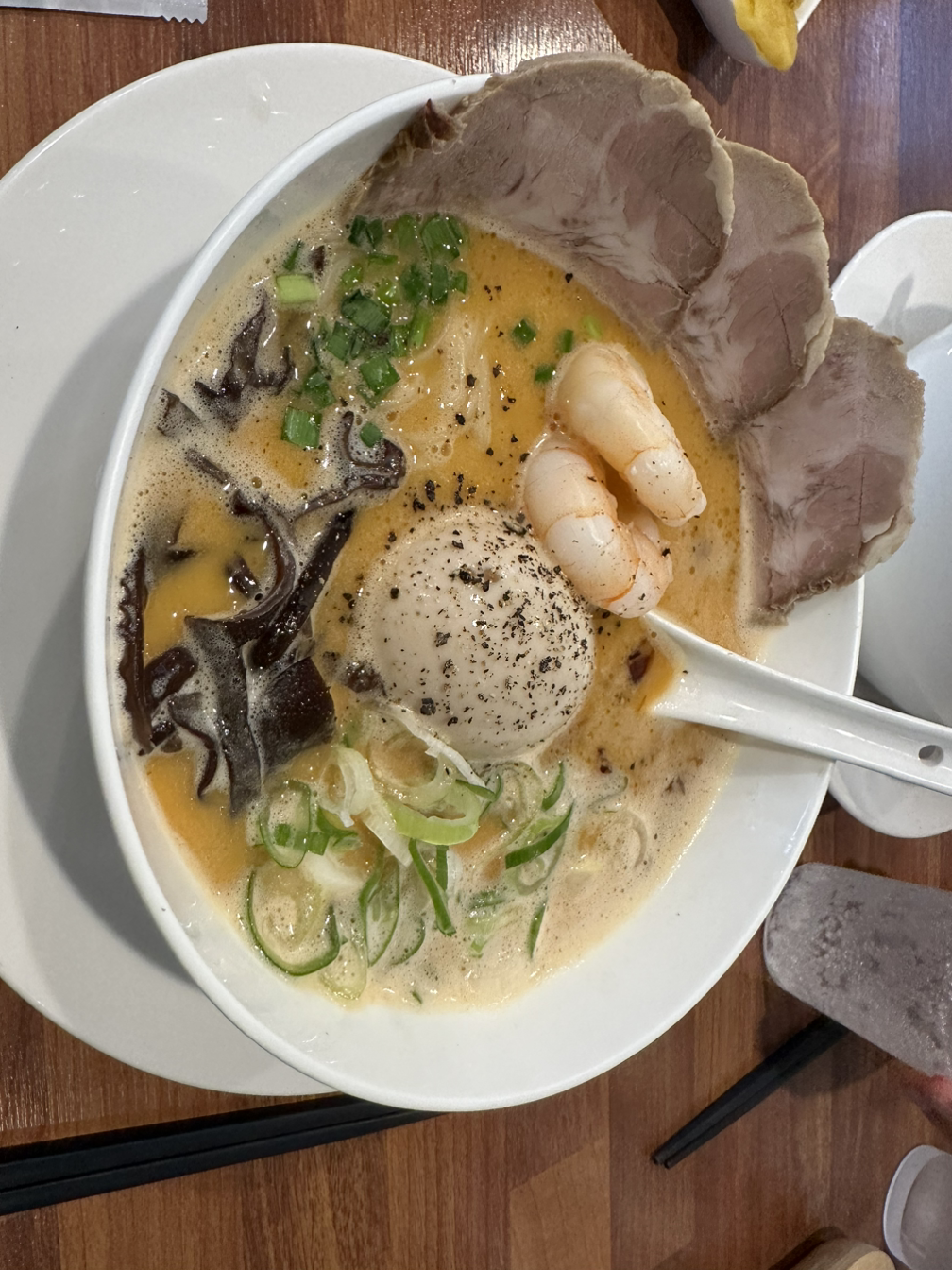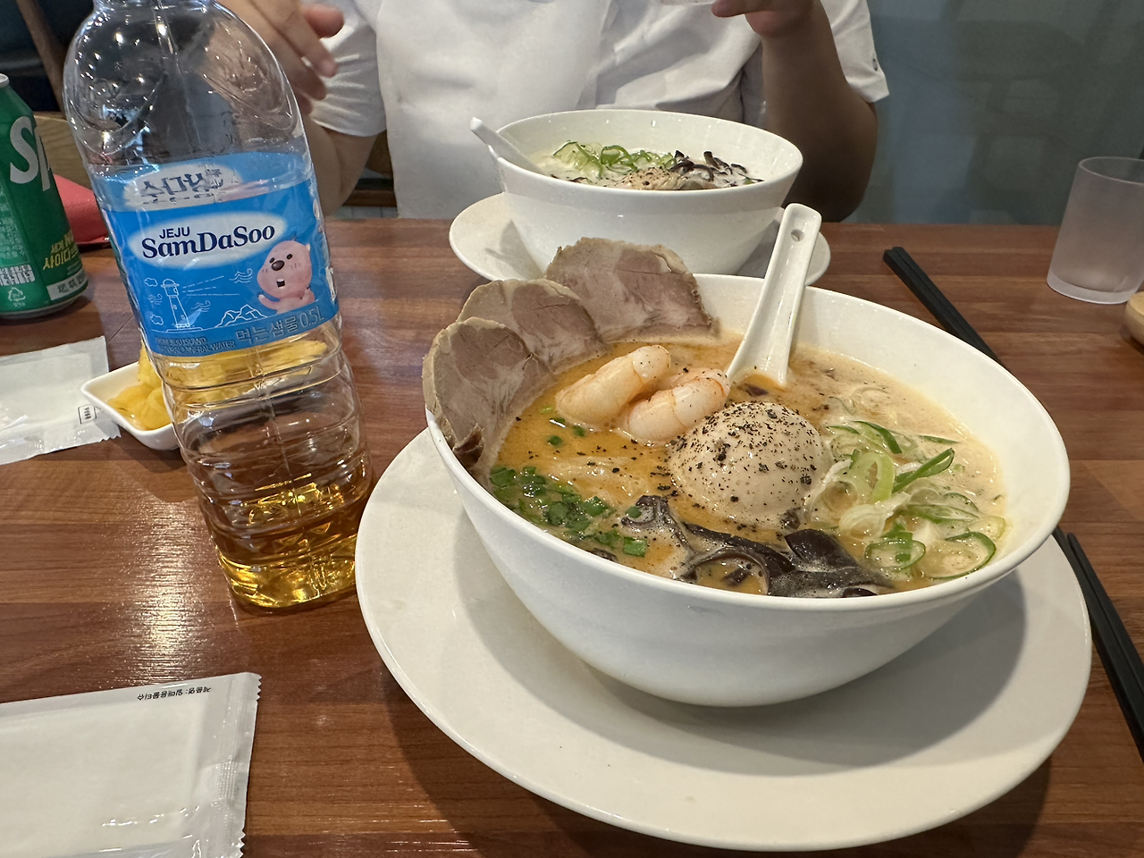 새우 먹으면 바로 피부에 반응하는 아내는 돈코츠 라멘을 먹고, 다른걸 먹어보고픈 나는 역시 새우라멘.