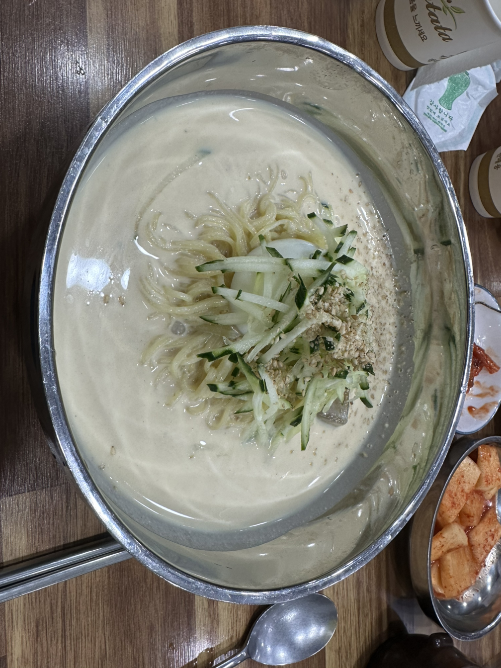 사위 사랑 처가라 하므로, 비록 어머님은 일찍 떠나셨지만 아버님과 처남 형님은 하여간 사위ㅡ매제가 오면 뭐든 잘해주시려 애쓰신다. 저번 베트남 출장 때는 로얄 샬루트를 사오셨고, 그전 몽골 여행 때는 보드까를 사다주셨고, 이번에 일본 다녀오셔서는 짐 빔을 사다주셨다. (우리 매제 술 억쑤로 좋아한다!^^;) 이번에도 애 데리고 차 갈아타 오느라 고생했다며 죽도시장 안, 유명한 소머리국밥 집이 있다며 데려다주셨는데, 저번에는 쉬는 날, 이번에는 또 휴식시간이 걸려 문앞에서 걸음을 돌려야했다. 아아, 백종원 씨가 극찬했다는 소머리국밥에 참소주 한잔으로 피로를 날리려던 내 계획이… ㅜㅜ 아내는 낮부터 술묵는거 안봐도 되겠꾸나! 하는 표정이었으나 3일전부터 포항 할아버지, 삼촌 본다고 춤추고, 아침도 대충 먹는둥 마는둥 기차탄다고 서둘렀던 소은이, 그 앞에서 배를 움켜잡고 소은이 배고픈데… 이러니 모두가 마음이 급해졌다. 진짜 말 그대로 가는 날이 장날이라고, 전국에서 손꼽히는 크기의 죽도시장에서 우리 다섯식구 밥 한 끼 먹을 곳이 마땅치 않았으니, 그 이유는 어느 지나가던 상인께서 명쾌히 풀어주셨다. 시장 사람들 일찍 밥해주고 지금은 다 쉴 시간이라, 주말엔 이시간에 다 안합니데이, 저쪽으로나 함 가보이소, 어르신의 손끝 골목에는 꼭 분식집처럼 생긴 국수집이 하나 있었다. 주변에 밥집들이 다 쉬어 그런가, 점심을 한참 넘긴 때인데도 사람이 제법 있었다. 우리는 잔치국수와 콩국수, 김밥 두 줄을 주문했다.