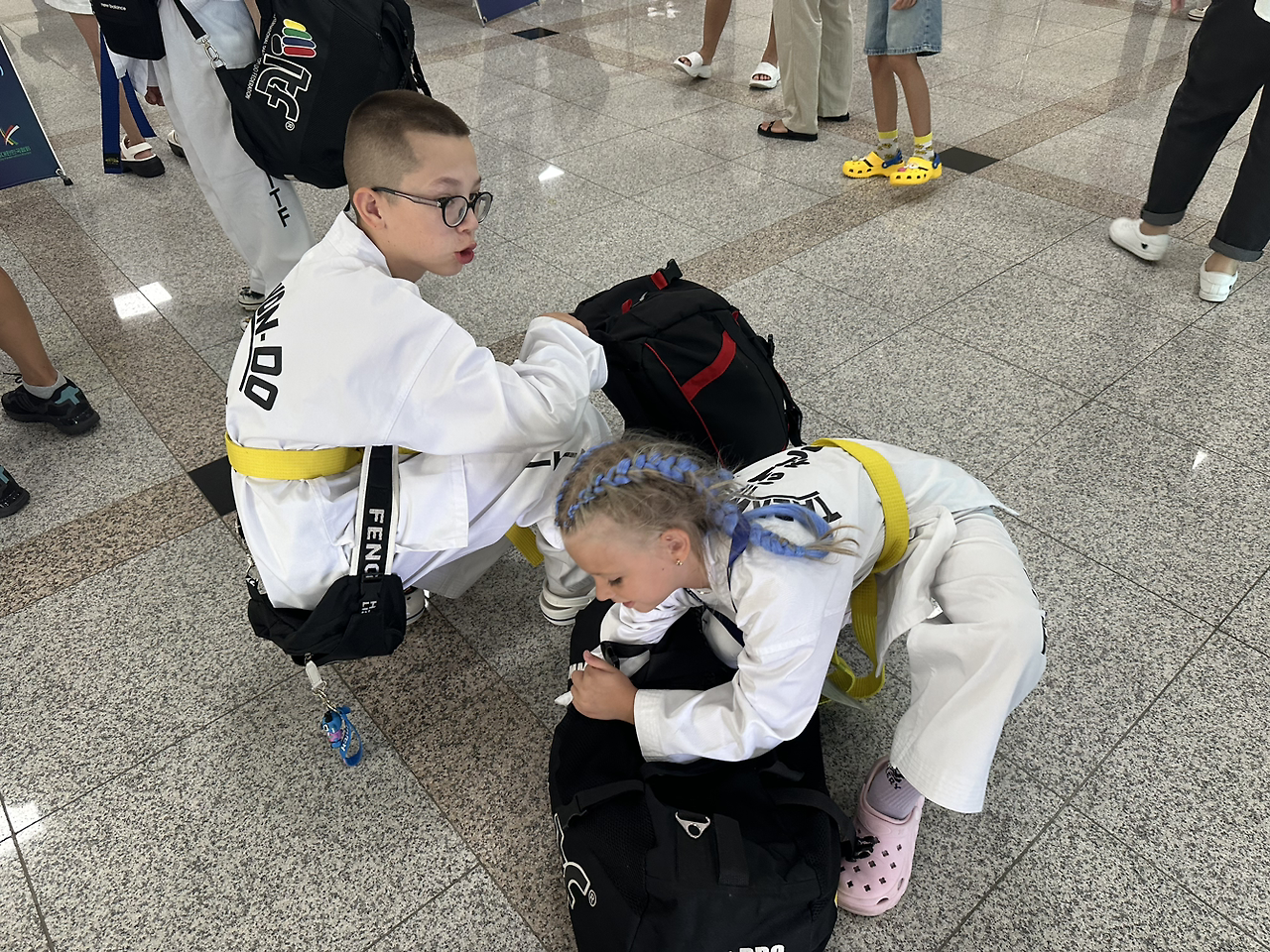 아무래도 경기 대기시간이 하염없이 길어지다보면, 연습하다, 안면 튼 외국 선수들과 이야기도 나누다, 또 차라도 한잔 마시다, 또 연습하다, 이런 시간들이 반복되기 마련인데, 그러다보면, 대진표 속 선수가 누군지 은근히 궁금해지기도 한다. 결국 오후 시간대 되어서야 내 첫 상대를 찾을 수 있었는데, 키는 나와 크게 차이가 나지 않았지만, 누가 봐도 차돌처럼 단단하고 야무져보이는 러시아 형님 사범님을 마침내 찾을 수 있었다. 큰 도장을 운영하고 있었고, 자신 휘하의 제자들을 계속 감독하느라 도복으로 갈아입지도 못하고 정신없이 바쁘신 분이었다. 반팔 소매 밖으로 나온 팔뚝 굵기부터 차이가 엄청났다. 그 모습을 본 콜라 부사범은 더이상 나에게 헛된 기대를 품지 않고 귓속말로, '부사범님, 다치지 마세요, 다치지만 마세요.' 를 계속 반복...(...) 야, 안그래도 무서워죽겠는데 자꾸 겁주지 말아줄래 ㅋㅋㅋㅋ온 가족이 태권도를 하며, 제자들을 이끌고 참가하셨다는, 나보다 두 살 위의 안드레이 사범님. 내가 누군지 알게 되자 여유가 생기셨는지, 경기 직전이 되어서야 도복을 갈아입으시고 몸을 푸시....ㅠㅠ 그래, 형님, 어디 두고봅시다!(웃자고 하는 얘깁니다, 실제로는 무척 인격도 좋으신 고단자 선배님이셨어요.)
