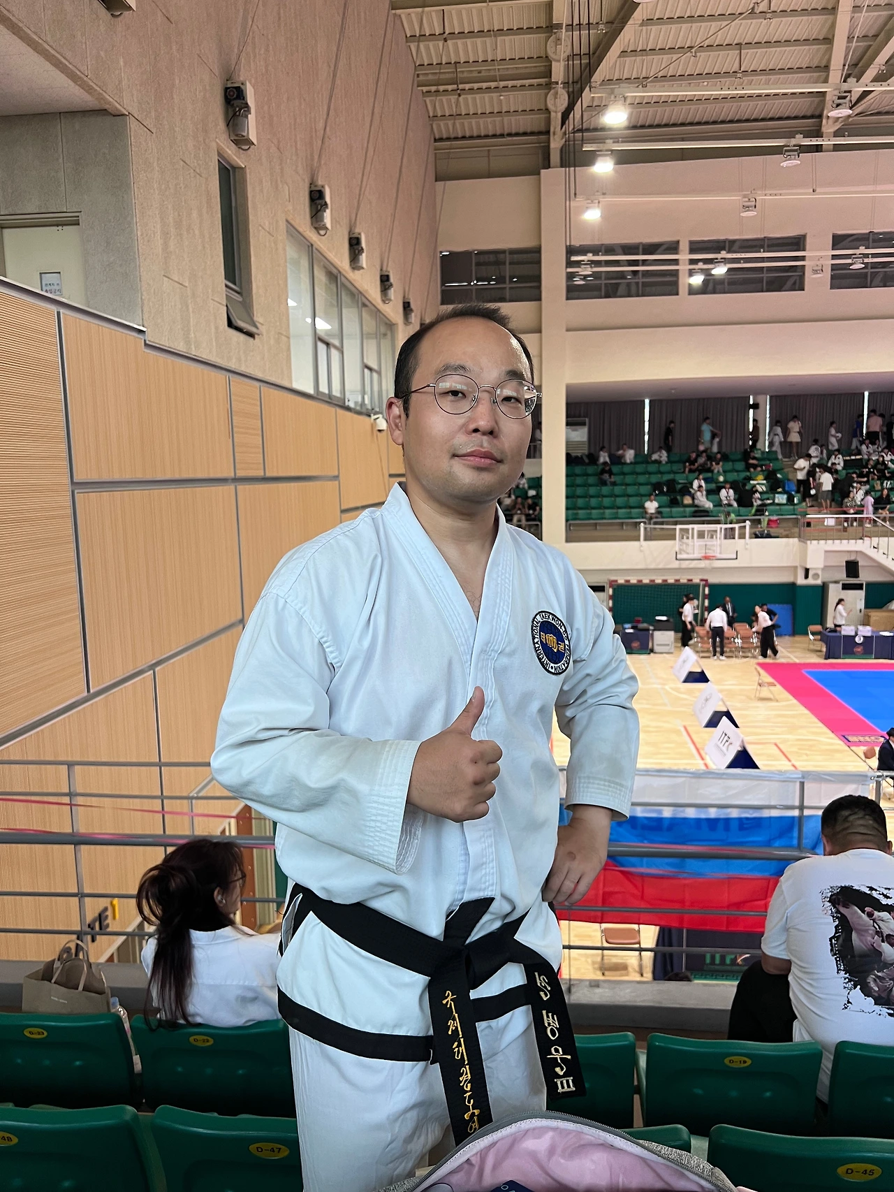 지난 두 번의 대회에서, 나는 동갑내기 정 사범님께 크게 졌다. 질 수밖에 없는 맞서기이긴 했다. 처음 뵈었을때 흰 띠를 매고, 학구파처럼 굵은 안경을 쓰고 몸을 풀던 정 사범님은, 나중에야 알았지만 국기원 태권도 6단이자 본인의 도장도 따로 가지고 계신 고수였다. 녹화된 영상에서 지나가던 어린 소년이 '엄마, 흰 띠 아저씨가 더 잘하는것 같아.' 라고 말했을 정도로 나는 직사하게 얻어터졌다. 오죽하면 경기 끝나고 전주도장의 ㅅ 형님이 '진짜 조심해야 혀, ITF는 무조건 흰 띠가 제일 무섭당게, 멀 하다 온 사람인지 알 수가 없어~' 라는 명언을 남기셨다. 그 다음 대회에서도 다시 정 사범님과 붙게 되었는데, 이번에는 다행히도 본인 실력에 맞춰 고단자 도복을 입고 오셔서 오해 섞인 망신은 면했으나, 그 때 갈빗대 두 대가 나가서 아내에게 크게 혼나고, 한동안 연습도 제대로 못한 채 엄청 고생했다.