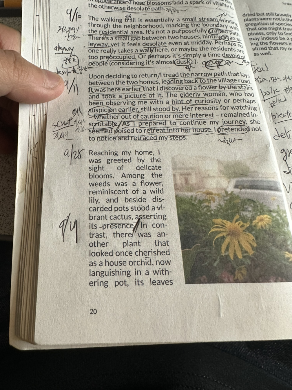 in contrast, there was another plant that looked once cherished as a house orchid, now languishing in a withering pot, its leaves dried but still bravely pushing forth a bloom. While these plants were not in their prime, they offered a diverse congregation of species | had previously overlooked. It's said that one might travel far in search of the bluebird of happiness, only to find it waiting upon return at home. Such may indeed be a profound truth. I had wandered admiring the flowers in other's gardens, but coming back, I realized that my own doorstep was adorned with blossoms as well.