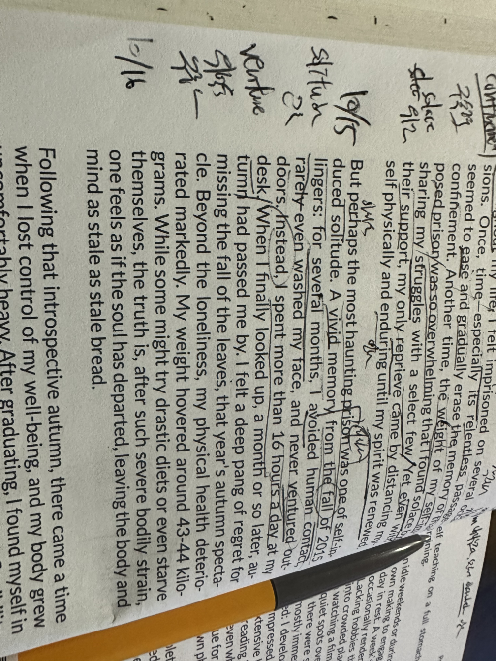 When I finally looked up, a month or so later, autumn had passed me by. I felt a deep pang of regret for missing the fall of the leaves, that year's autumn spectacle. Beyond the loneliness, my physical health deteriorated markedly. My weight hovered around 43-44 kilo-grams. While some might try drastic diets or even starve themselves, the truth is, after such severe bodily strain, one feels as if the soul has departed, leaving the body and mind as stale as stale bread.