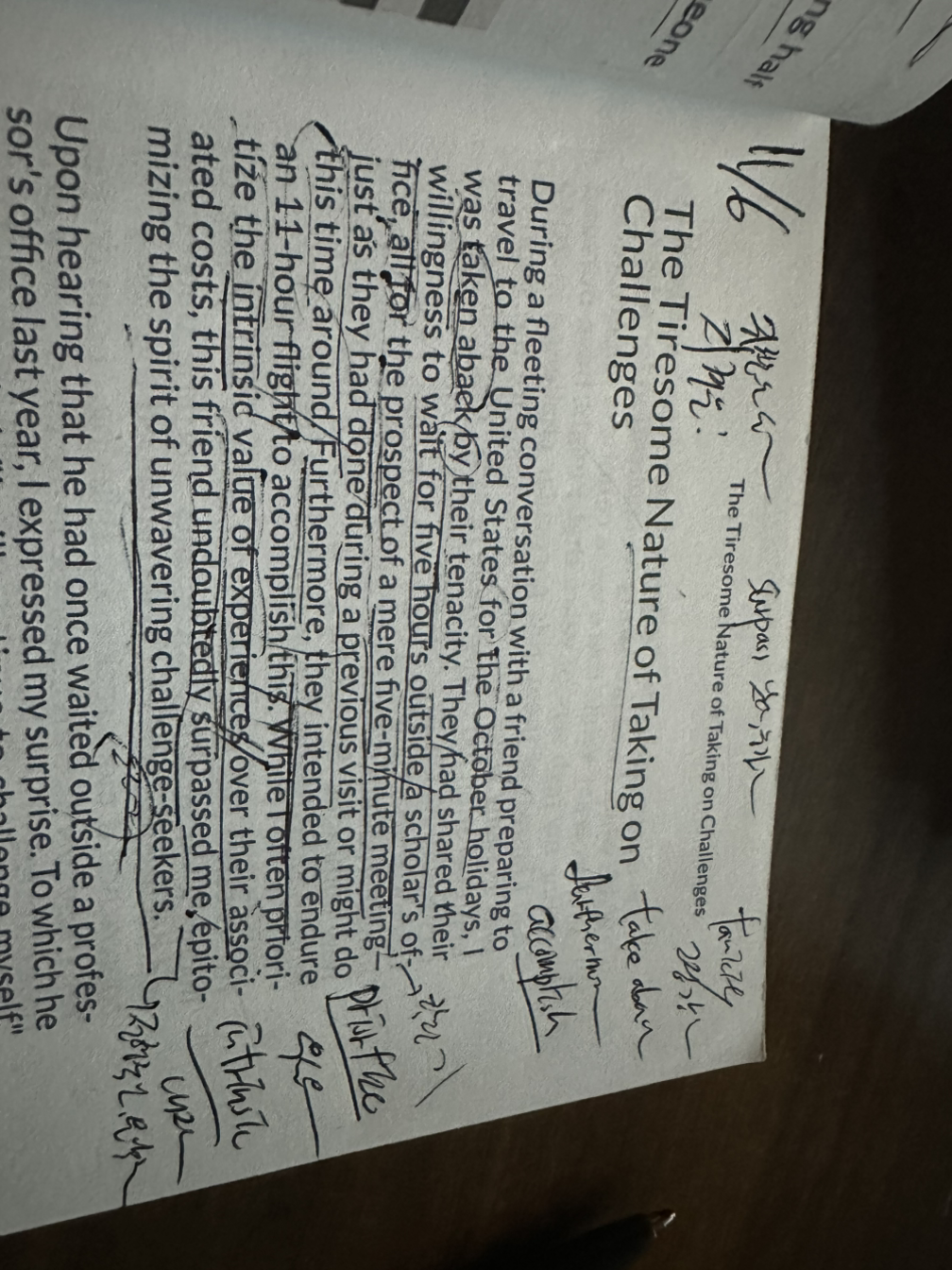 During a fleeting conversation with a friend preparing to travel to the United States for the October holidays, | was taken aback by their tenacity. They had shared their willingness to wait for five hours outside a scholar's of-fice, all for the prospect of a mere five-minute meeting-just as they had done during a previous visit or might do this time around. Furthermore, they intended to endure an 11-hour flight to accomplish this. While I often prioritize the intrinsic value of experiences over their associated costs, this friend undoubtedly surpassed me, epitomizing the spirit of unwavering challenge-seekers.