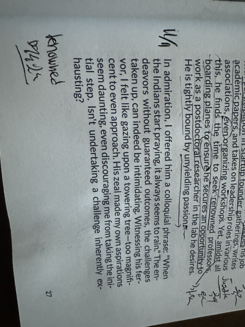 감탄하며 저는 그에게 구어체 문구를 제안했습니다: "인도인들이 기도를 시작하면 항상 비가 내리는 것 같습니다." 보장된 성과 없이 진행되는 노력과 도전은 실제로 위협적일 수 있습니다.