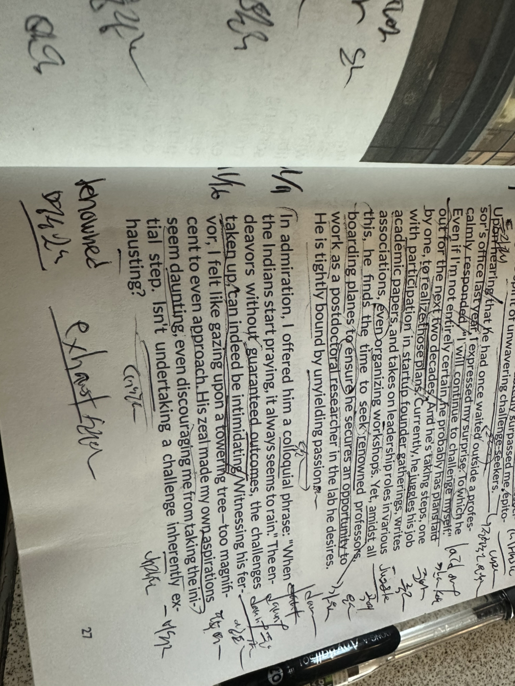 그의 열정을 목격하면서 저는 다가가기에도 너무 웅장한 나무를 바라보고 싶었습니다. 그의 열정은 제 자신의 열망을 어렵게 만들었고, 심지어 첫 걸음을 내딛는 것조차 방해했습니다. 도전하는 것은 본질적으로 지치지 않나요?