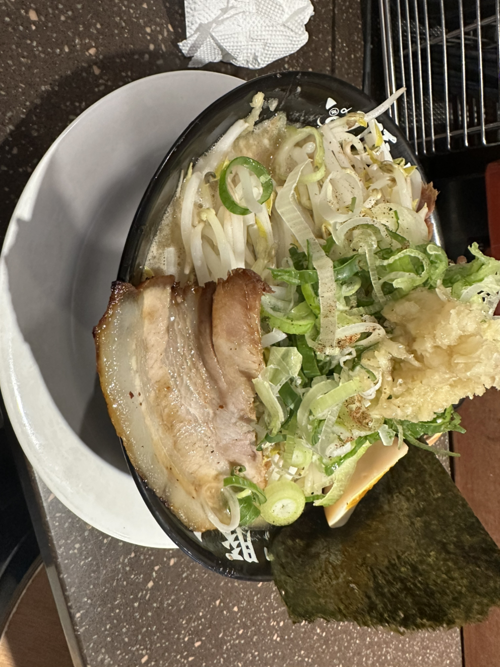 일단은 양이 굉장한데요, 저는 숙주와 마늘과 파를 모두 많이 달라고 했는데, 그릇 하나가 가득 넘치도록 왔습니다. 면을 추가해서 그런가 했더니, 추가한 면은 또 접시에 따로 나왔어요. 이미 고명이 많아서 고명을 먹는데도 시간이 걸렸기 때문에, 그새 접시에 놓여진 면은 다소 굳고 불어버리고 말앗지요. 게다가 고명을 먹은 다음에도 면을 넣자 육수가 다소 부족해서, 두번째 면을 먹을때는 그 진한 라멘 육수도 아무래도 좀 물을 탄듯 좀 연하게 느껴졌습니다. 숙주, 파 등 물기가 잇는 고명을 많이 추가한 덕도 있었겠지요. 보통 어느 집이건 면과 밥을 추가해서 충분히 면을 즐기고 밥까지 말아먹는 편인데, 드물게 밥을 만 육수를 절반정도 남겼습니다. 양 자체도 많았지만, 제가 양 선택을 잘못 해서, 육수가 흐릿해지는 바람에 끝까지 맛있게 먹질 못했어요.