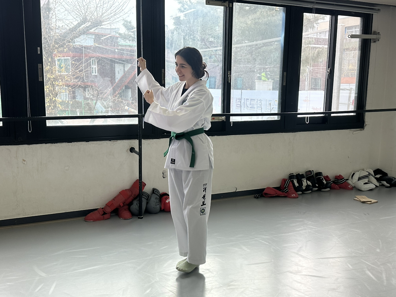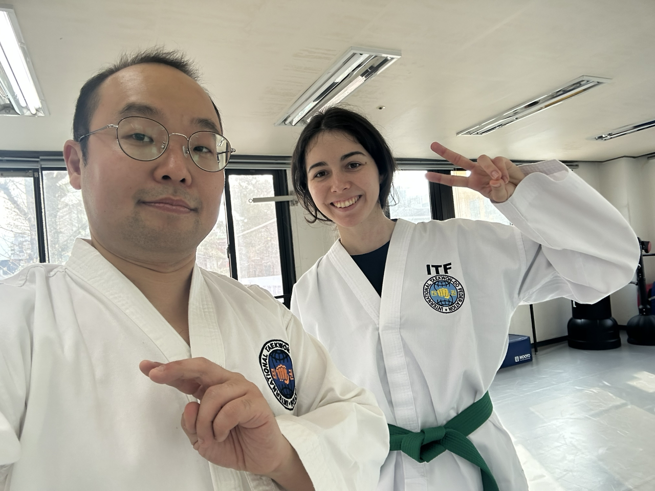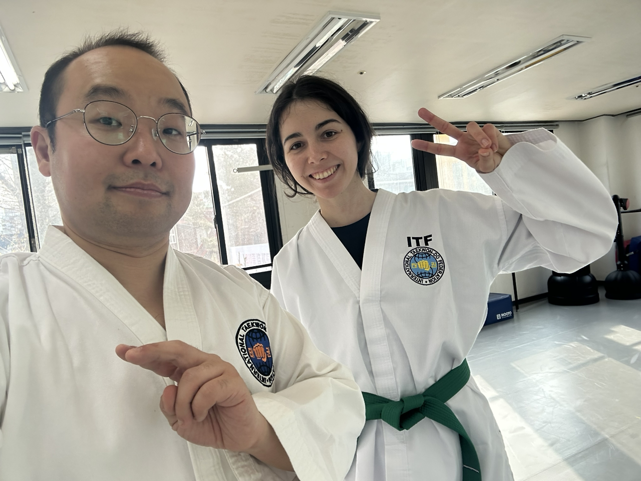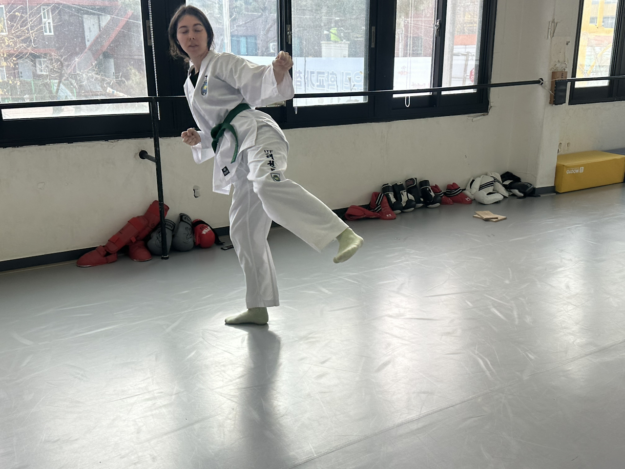 스뻬인에서 온 라이아가 잠시 부모님을 뵈러 돌아가기로 했다. 바쁜 한국생활 시간 쪼개어 태권도 연습도 결코 쉽지 않았을텐데, 그래도 어찌 용케 율곡 틀까지 배웠다. 날이 무척 추웠는데도, 집에 돌아가기 전에 잊어버리지 않게 연습하겠다며, 기를 쓰고 연습하는.모습이 귀엽고 이뻤다. 그래서 내 연습 좀 미루고라도 라이아의 서기와 찌르기, 막기, 허리 움직임 등을 봐주었다. 그래서 내 연습은 사주찌르기, 막기부터 충무 틀까지 유급자 틀까지만 다 했고, 이후 강.선생님의 최영 틀을 좀 봐드렸다. 선생님은 그동안 라이아가 애썼다며 용돈도 약간 주셨다. 어차피 1월에 다시 오겠지만, 그래도 역시 소중한.사매다.