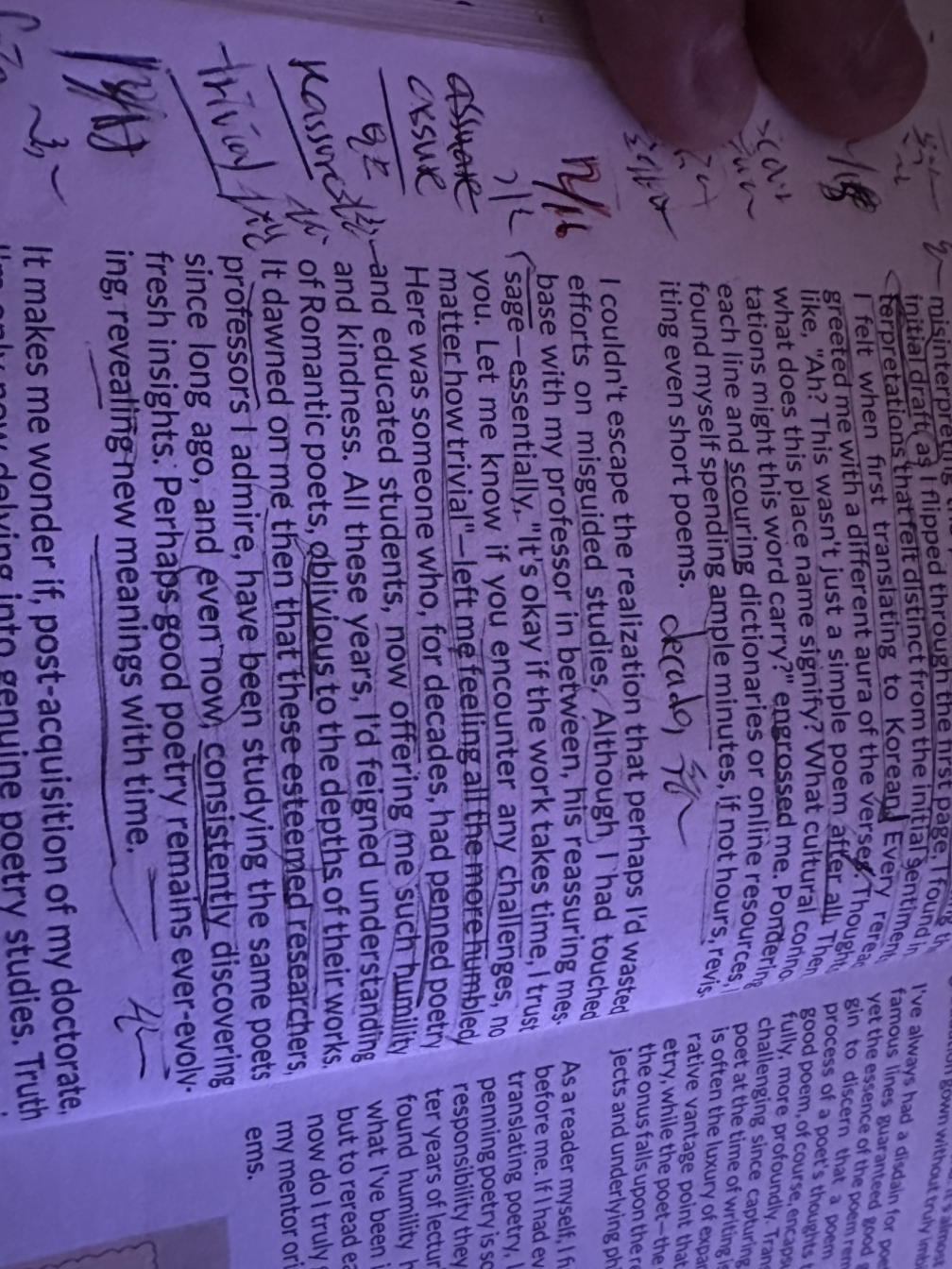 Here was someone who, for decades, had penned poetry and educated students, now offering me such humility and kindness. All these years, I'd feigned understanding of Romantic poets, oblivious to the depths of their works. It dawned on me then that these esteemed researchers, professors I admire, have been studying the same poets since long ago, and even now, consistently discovering fresh insights. Perhaps good poetry remains ever-evolv-ing, revealing new meanings with time.