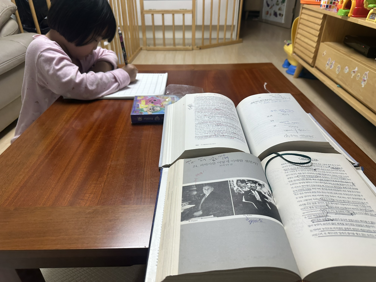 소은이는, 요즘 제 애비를 흉내내는지, 부족하나마, 한글, 영어, 숫자를 반복해서 쓴다. 천체역학의 라플라스가 유언하기를, 내가 알기는 너무 적고, 모르는 일은 무한하다.했다. 내가 내 부족함을 당연히 알아 공부와 훈련을 반복하듯, 나의 신앙 또한 음주 여부를 떠나 갈 길이 멀다. 나는 더 성경을 읽고, 기도하고, 고민하며, 그 분이 누구인지 알아야한다. 어데 공인받지 못한 이단이 꾀듯, 나만 아는 신의 비밀이 아니라, 찌르기, 차기처럼 가장 기초를 단련하듯, 소은이와 내가 저녁마다 읽고 쓰듯, 알기 위한 기본에 충실해야한다. 아침 저녁 진심으로 알기 위한, 최선을 다해야한다. 올한해, 더욱 충실히, 아멘.