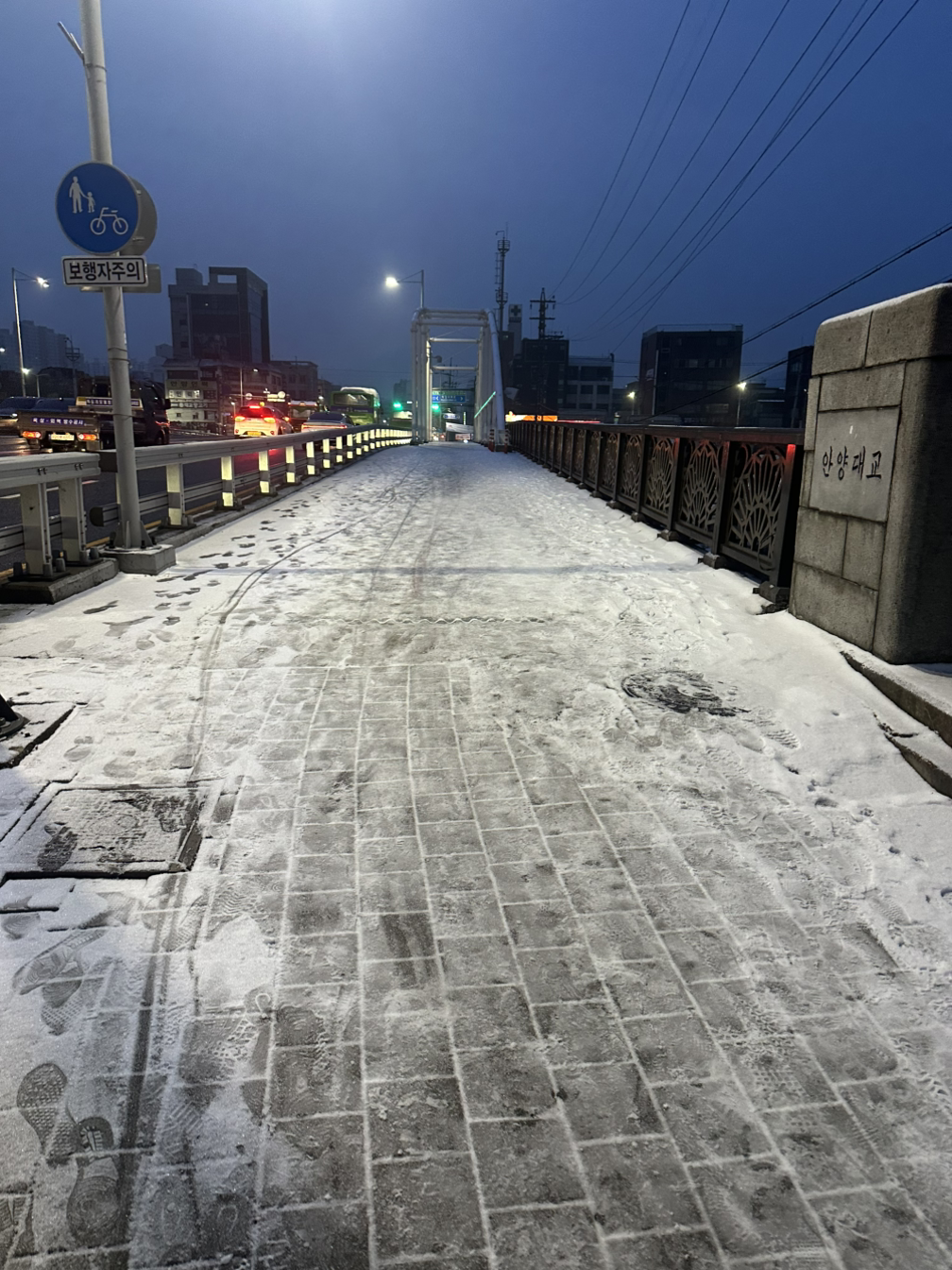 간밤의 훈련 열기가 잠들기 전 목욕으로도 완전히 식지 않아 잠들지도 않고 깨지도 않은 상태로 뒹굴거리다 일어났다. 실제로 잠든시간은 3시간이나 되었을까, 온몸에 피로가 다글다글 붙어 다시 불가리안백을 들거나 치고 찰 엄두가 나지 않았다. 삼사십분쯤 누워있다 커피 한잔과 껌으로 잠을 깨우고, 두꺼운 책.두 권 짊어지고 아내에게 가는 기차를 타러 나섰다. 해만 저무는게 아니라 달도 저무는 겨울 이른 아침나절, 밤새 눈뜨던 가로등들은 하나둘.눈꺼풀을 떨구고, 아직.완전히 녹지 않은 길 위의 얼음들이 생선좌판 갈치비늘처럼 얽어있었다. 나는 발끝을 깊숙히 바닥에 스미게 하듯 힘주어 걸었다. 이른 주말 아침을 깨우는 이들이 많았다.