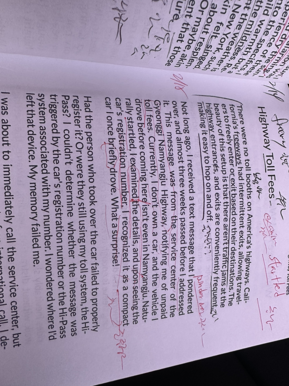 Not long ago, I received a text message that I pondered over, and almost three weeks passed before I addressed it. This message was from the service center of the Gyeonggi Namyangju Highway, notifying me of unpaid toll fees. Currently, I don't own a car, and the vehicle I drove before coming here isn't even in Namyangju. Naturally startled, examined the details, and upon seeing the car's registration number, I recognized it as a compact car I once briefly drove. What a surprise!