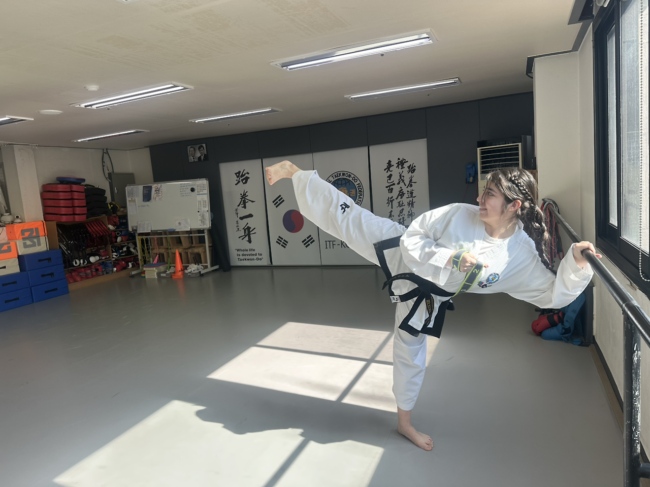 이제는 진통제를 먹지 않아도, 앉고 일어서는데 불편이 덜하고, 속옷과 바지도 서서 입을수 있게 되었다. 요즘 세상 말로 그라데이숀이 옅어진다 하던가. 아직도 특정 동작이나.발차기를 할때 왼쪽 허리가 찌르르 울릴때가 있으나, 아픔이 갈수록 옅어지며, 할수 있는 동작들이 많아지니.좋다. 어찌.보면 소은이 어릴때 눕던 것이 엎드리고, 엎드린것이 기어가고, 기어가던 것이 서고 걷고 뛰는 모습이 생각나 비적이 혼자 탈의실에서 웃었다. 팔순의 강 선생님이 허리 도로 덧난다며 야단하셨지만, 팔굽혀펴기 3종 겸하여 원효부터 충무까지 유급자 틀 나머지, 그리고 칠레 처녀 가비의 충장 틀을 두.번 알려주었다. 높은 발차기가 없는만큼 낮은 자세에서의 중심이 중요한 틀이다.