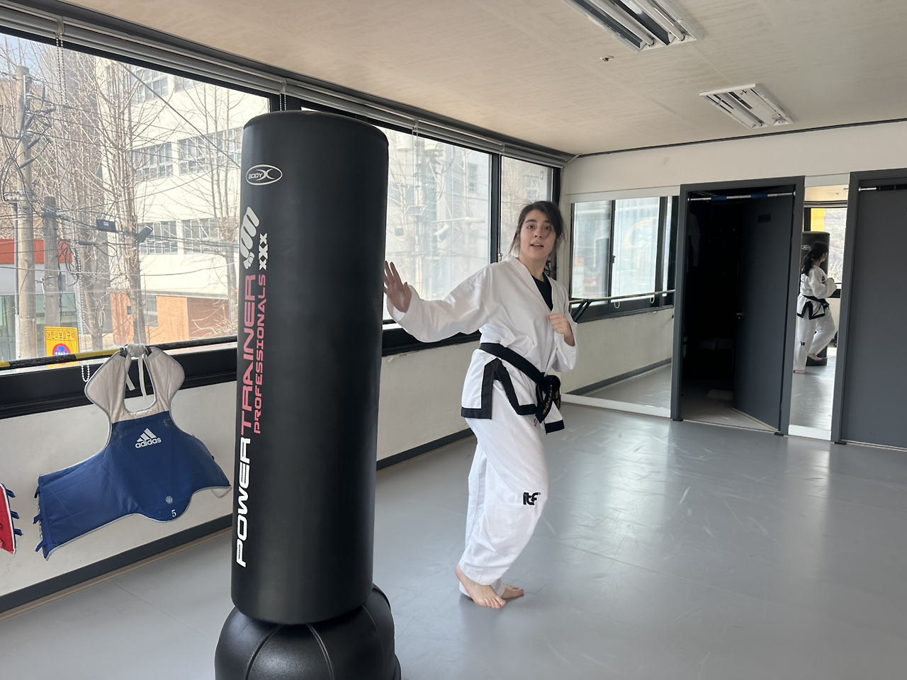 스뻬인 라이아와 사현님이 지켜봐주시다가 몇 가지.과제를 더 주셨다. 발을 차고 거둘때 발 모양은 일정하게 발목을 꺾어 당겨줘야며, 무릎이.가장 빠르게, 그리고 발에 힘주지 말고 힘을 빼야 오히려 더 정확하고, 빠르고, 위력있게 찰 수 있다셨다.. 아니, 알긴 아는데요ㅜㅜ연습해야쥬ㅜㅜ