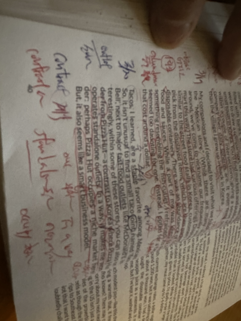 타코는, 내.알기로, 멕시코 사람들.사이에서 굉장히 인기 있는 음식이다. 그러므로, 맥도날드처럼 패스트푸드를 취급하는, 큰 가게 다음으로 타코 벨.같은 작은 타코 가게를 찾는건 그리 쓸모없는.일이 아니다. 흥미롭게도, 이러한 가게들 중 일부는 한국처럼 독립형으로 운영되는 핏쟈 헛과는 다르게, 핏쟈 헛에서 주문을 할수도 있다. 이런 면에서는 나는 궁금해졌는데, 여기서 핏쟈 헛도 틈새 시장을 차지하고 있는걸까? 그러나 또한 굉장히 지혜로운 운영 방식인듯도 보인다.