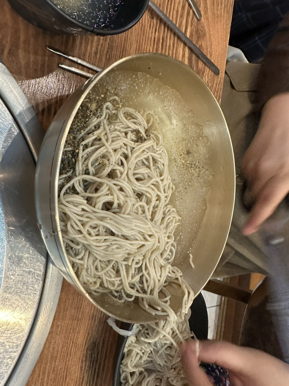 들어가자마자 대감마님 생일잔치 때문에 판소리와 광대놀음이라도 벌어질법한, 사극 속 널찍한 대갓집 같은 식당이 우리 가족을 반깁니다. 식탁이 가득한 가운데 마당 주변으로, 정말로 99칸 고래등 기왓집 같은, 장지문 방들마다 역시 식탁이 있고, 손님들이 가득 차 있지요. 막국수, 보쌈 등이 주 음식이긴 하나, 기타 전골이나 백숙 등은 반드시 아무리 늦어도 2~4시간 전에는 미리 전화하여 예약을 해야 한다고 하는데, 이 바글바글한 문전성시를 보니 납득이 됩니다. 게다가 막국숙집에 일하시는 직원분들, 왜 이렇게 국제적이죠?! 안 그래도 쌀국수집이나 라멘집에서 음식 날라주는 서양 아가씨 한둘은 그러려니 했는데, 이 막국수 집은 일하시는 분들 국적조차 다양합니다. 까무잡잡한 동남아시아 아가씨, 코 오뚝하고 키 크고 어깨 넓은 북유럽 계열 백인 아가씨, 아담하고 단단하게 생긴 흑인 아가씨 등등등... 여기 무슨 LA 코리아 타운 북창동 순두부집이에요?!!