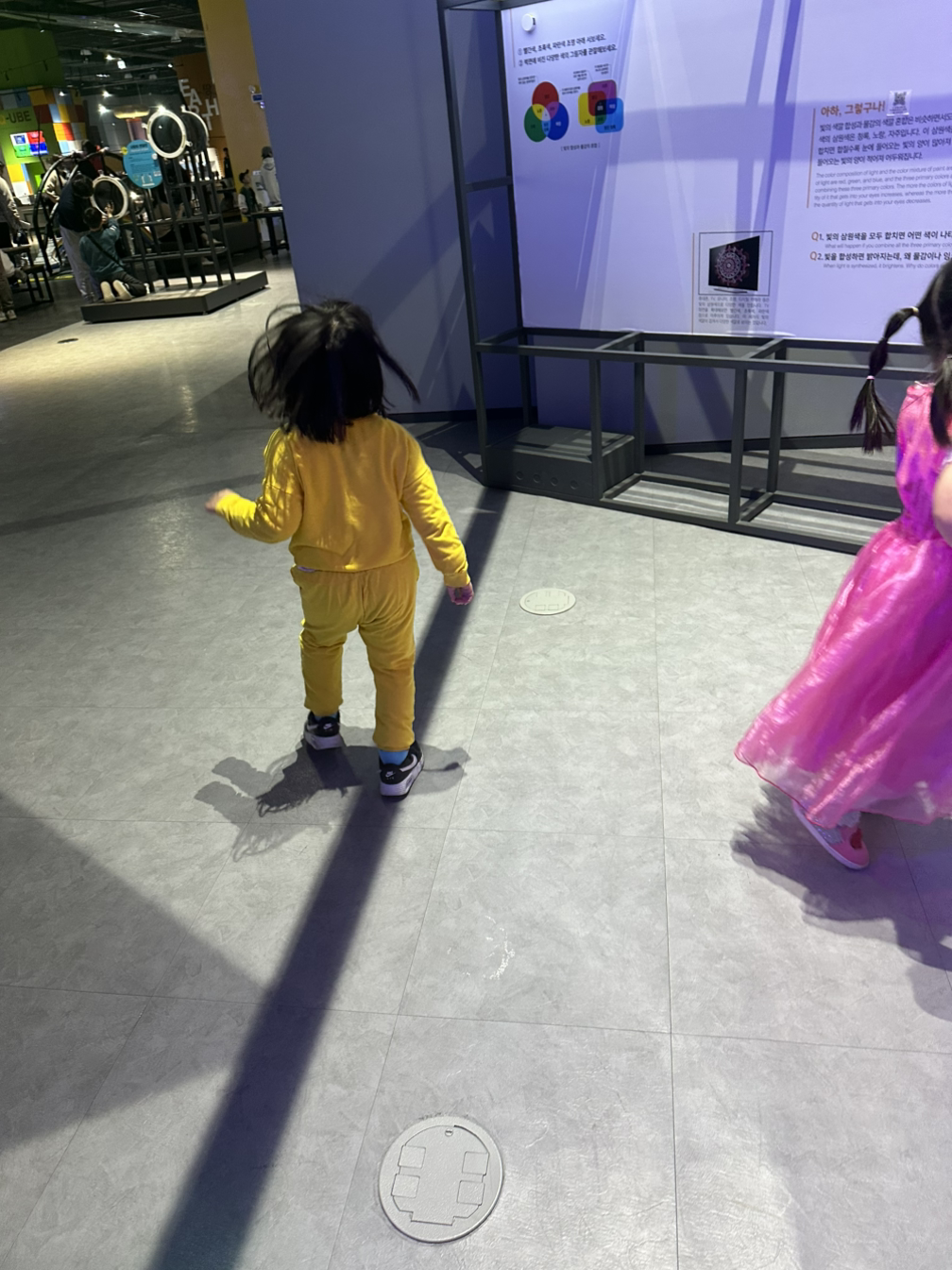 아내나 나나, 지갑 작고 마음 좁은 서민인지라, 혹시 나라 최고의 예술품들 중 몇 점이라도 깨면 우리집 기둥뿌리 다 드러난다 싶어서 아내와 나는 아이를 꼭 안고, '소은아, 너 저그 있는 것중 하나라도 작신 깨불믄 우리 집 난리나네잉. 소은이 저기 있는거 다 물어줘야 돼야.' '(눈빛 흔들림) 소은이.. 집에 못가요?' '하모, 못 가제. 소은이 여서 청소하고, 깬거 다 돈 내야 카고.' '이잉, 엄마아빠 카드 있잖아.' '카드로 될 일이 아이라! 엄마는 돈 없데이~' '아빠도 돈 웂시야. 우리 소은이 절대 저서 날랑새맹키로 뛰댕기면 난리난다잉.' 영호남 단결의 말투 때문인지 아이는 점잖게 미술관에서 잘 관람해줘서 참 고마웠다. 의외로 아이는 미술관도 재밌었다고 했고, 다음에도 과학관과 미술관을 또 오고 싶다고 했다. 가족이 함께 있는데 어딘들 즐겁지 않겠는가.
