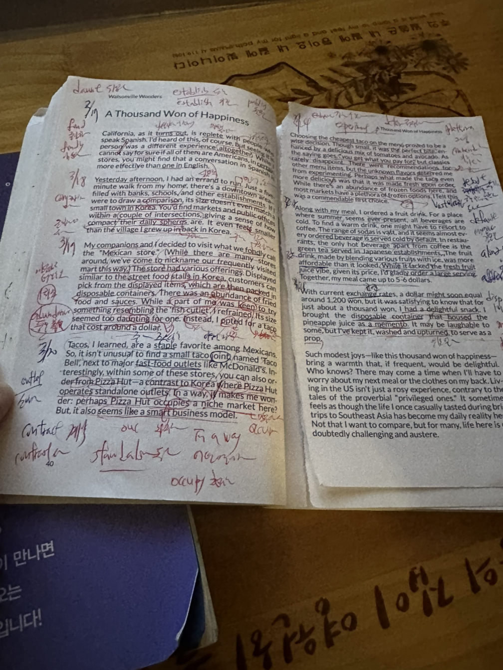 With current exchange rates, a dollar might soon equal around 1,200 won, but it was satisfying to know that for just about a thousand won, I had a delightful snack. I brought the disposable container that housed the pineapple juice as a memento. It may be laughable to some, but l've kept it, washed and upturned, to serve as a prop.