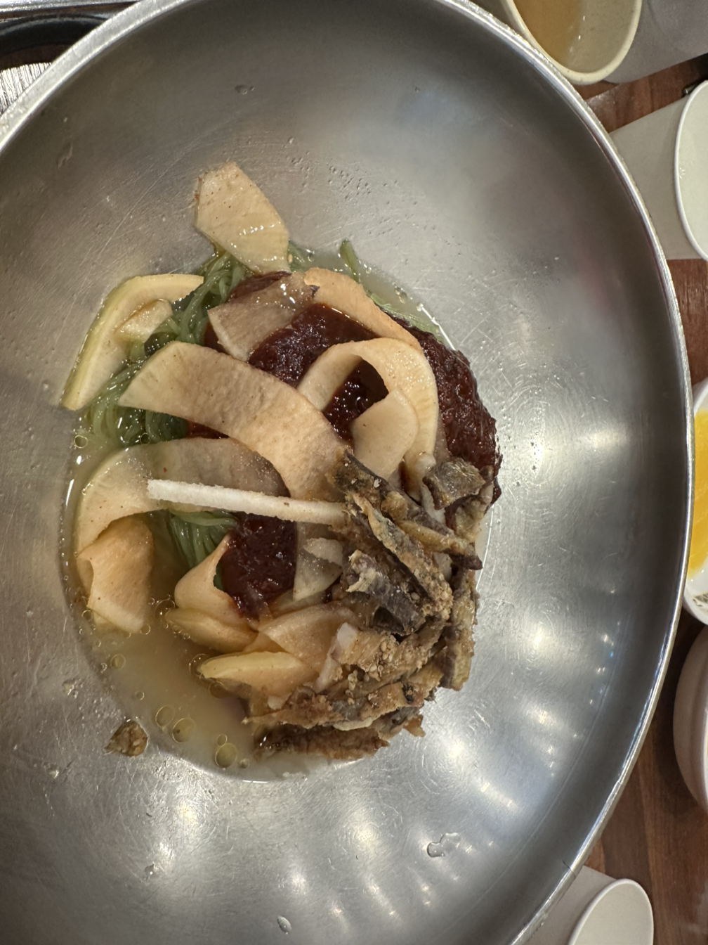 육수만 다르지, 언뜻 보면 진주 냉면 비슷한, 전형적인 육전 냉면입니다. 그렇지만 일단 썰어올린 육전이 두툼한데, 육수와 겉돌지 않게 기름기가 많지는 않고요, 고기와 면이 모두 탱글탱글하게 잘 씹히는데다 육수가 참 개운합니다. 비빔냉면도 많이 맵지 않은데, 참기름을 많이 넣어서 고소하고요. 다만 처가, 혹은 아내가 당직일때 내려갈때마다 한번씩은 먹었던 듯 하니, 햇수로 얼추 6년- 그래도 1년에 적게 먹진 않은듯한데, 확실히 한때는 육수와 양념장이 모두 좀 달게 느껴진 적도 있었습니다. 게다가 코로나 영향으로 24시간 운영하던 지점도 운영시간을 대폭 줄이거나, 난데없는 '브레이크 타임' 이 생기면서, 밥 먹는데 어려움이 있기도 했었지요. 맛도 그때쯤 잠시 한번 흔들렸던 것으로 생각합니다. 최근에 다녀왔을떄는 아내와 제가 결혼 전 먹었던 그 맛으로 많이 돌아왔어요.