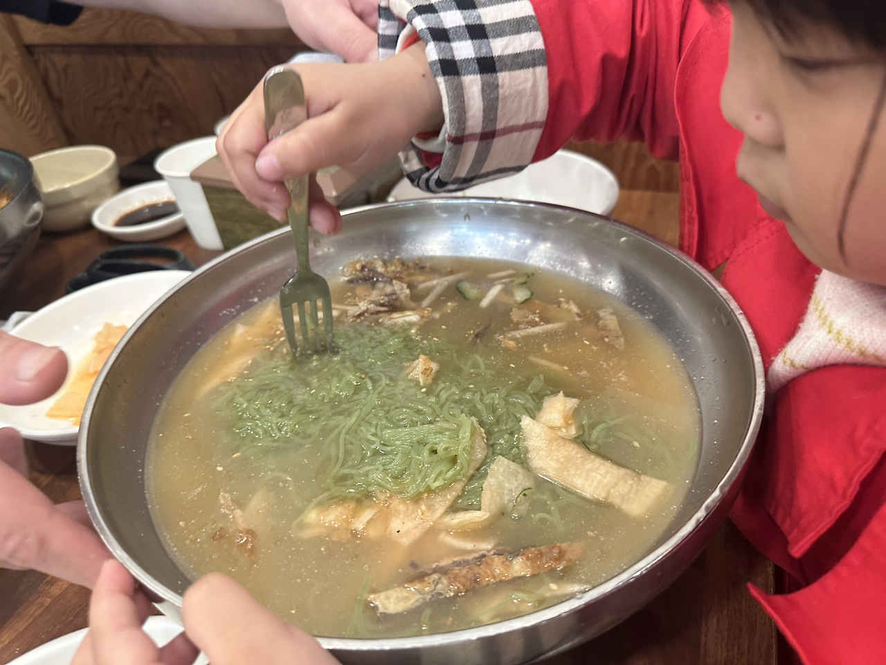 참고로 소은이는 이 집 냉면 4살때부터, 어른 그릇으로 혼자 다 먹었습니다...(...) 지나시는 분들마다 '아이고, 공주야, 니 이걸 혼자 다 묵어뿟나~~~' 할정도로 이미 그때부터 냉면 대장...다른건 잘 나눠주는데, 냉면과 빨간고기- 즉 생고기만큼은 잘 안 나눠줘요. 일단 제 입에 막 끌어넣고 봅니다... 아니, 아비 어미가 굶기냐고;;;; 진짜 38선 이남에서 우리 딸만큼 잘먹고 다니는 아이 드물걸요..ㅠㅠ
