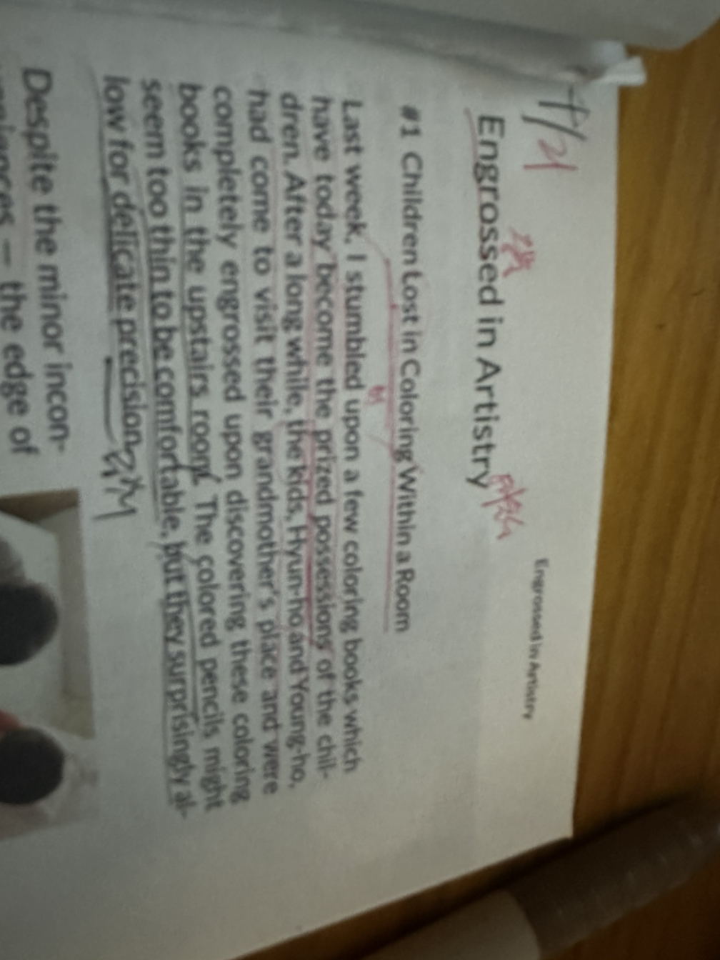 지난주, 나는 오늘의 우수아동도서로 선정된 색칠공부 책 몇 권을 우연히 발견했다. 그로부터 시간이 좀 지나, 아이들, 현호와 영호는 할머니 집에 왔다가 윗층 방에서 이 색칠공부 책을 발견하고 완전히 푹 빠졌다. 색연필들은 편히 쓰기엔 너무 닳았지만, 그들은 놀라울 정도의 섬세하고 정확하게 사용했다.