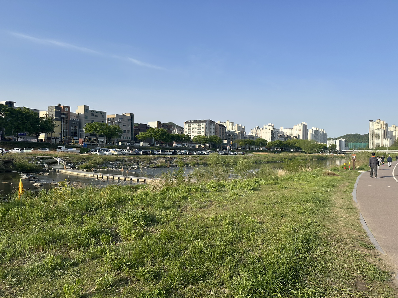 날씨가 무척 좋아.뛰는 사람들이 많았다.