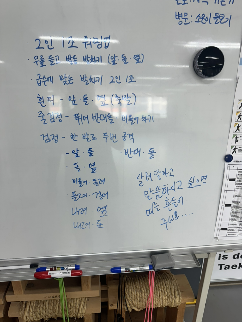 목요일에 연습을 몰아서 했더니, 몸이 무겁고 쑤셨다. 보 맞서기 연습으로 혼자 몸 풀다 강 선생님, 우백호와 이 장교가 차례차례 왔다. 맞서기 기본기 연습을 함께 하고 있을 때쯤 저녁반 맞서기 훈련 과정을 생각해보겠다며 열혈 부사범님이 커피 들고 찾아왔다. 으, 저녁반 부사범까지 왔으니 오전반의 기개를 보여주지 않을수 없군. 다 덤벼….? ㅜㅜ
