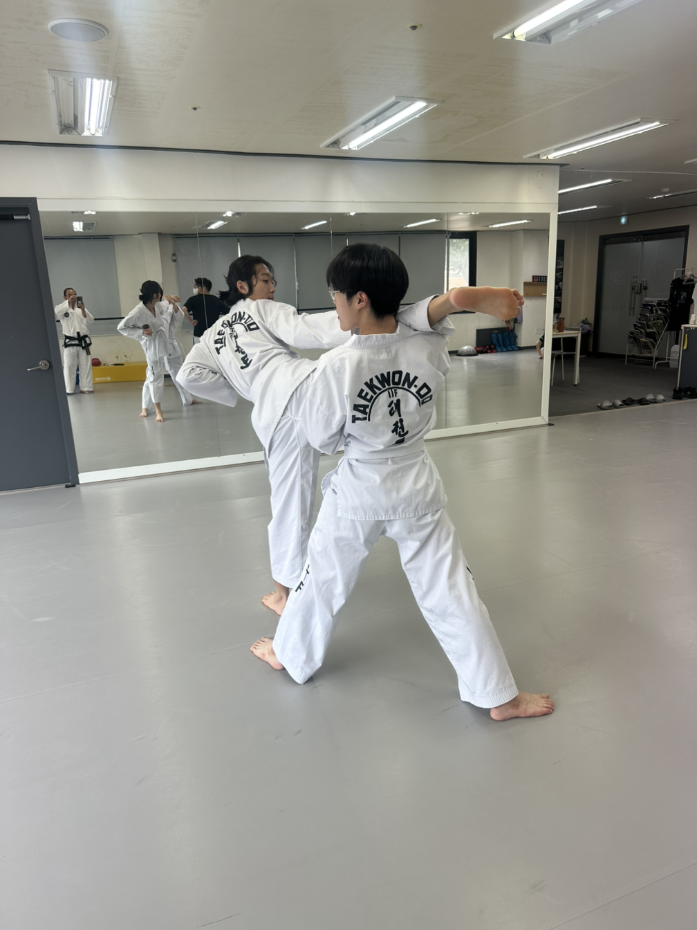 ㅡ. 좌우 기본 발차기, 뛰어발차기, 뛰어서 돌려찼다 걸어차기. 반대돌려차기, 뒤돌려옆차찌르기 연습.