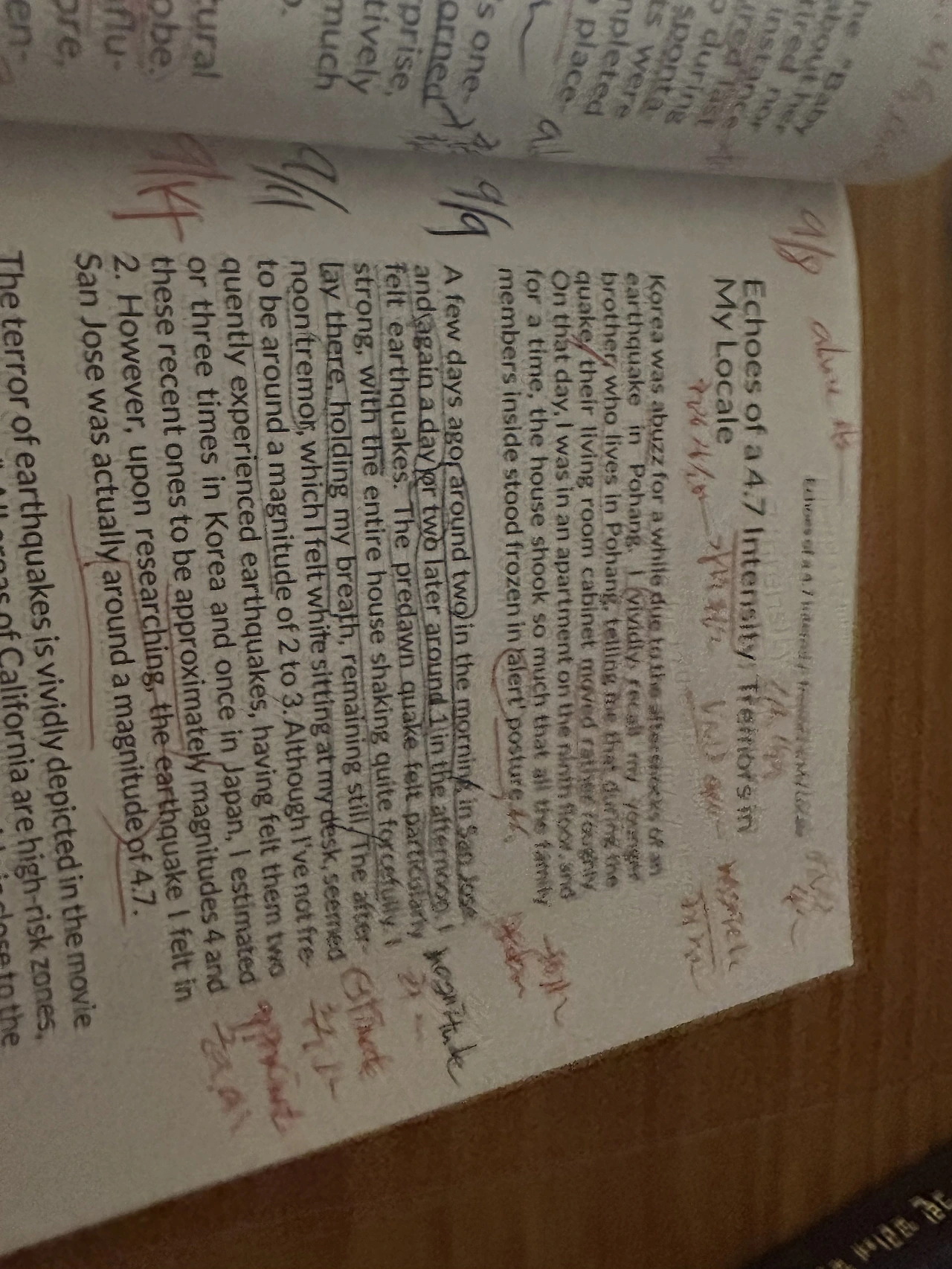비록, 내가 지진을 많이.겪어보진 못했고, 한국에서 두세번, 일본에서.한번 겪어봤다곤 하지만, 내가 가늠하기로, 최근의 지진들은 대략 그 강도가 4.그리고 2는 될듯했다. 그러나 조사에 따르면, 내가 산 호세에서 느낀 지진의 강도는 거의 4.7에 육박했다.