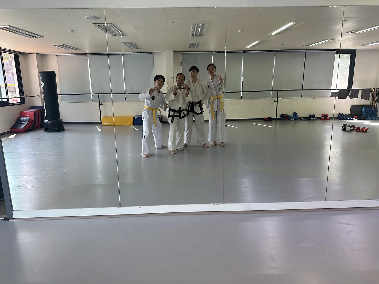 다음날, 즉 오늘 일어나니 허리의 둔탁한 무감각은 여전히 남아 있었다. 그렇다고 해서 허리를 조금 비틀어보니 훈련을 못할 정도는 아녔지만, 약간 비틀리는듯한 균열감이 있었다. 조금 쉬엄쉬엄해야 되나 싶었는데, 사범님도 못 나오시는 아침 도장에 반가운 얼굴이 늘 그렇듯 천연덕스레 앉아있었다. 우리 도장에서 초단까지 따고 일본으로 건너가 ITF를 계속하고 있는 최 상이었다. 어느틈에 2단까지 딴 그는, 원래도 훤칠하고 잘생겼으나 더욱 빛나고 해사하였다. 오오, 히사시부리.. 그는 잠시 쉬러 왔다했다. 사과까지 들고 먼 길 온 그에게 커피 한 잔 사주면서 큰 손님.오셨으니 오늘도 쉬긴 글렀다고 느꼈다. 나는 진통제 서너 알을 또 커피와 함께 몰래 꿀꺽 삼켰다. 그즈음 좌청룡, 우백호도 왔다. 너네 이번 수요일엔 안왔잖아? ㅜㅜ