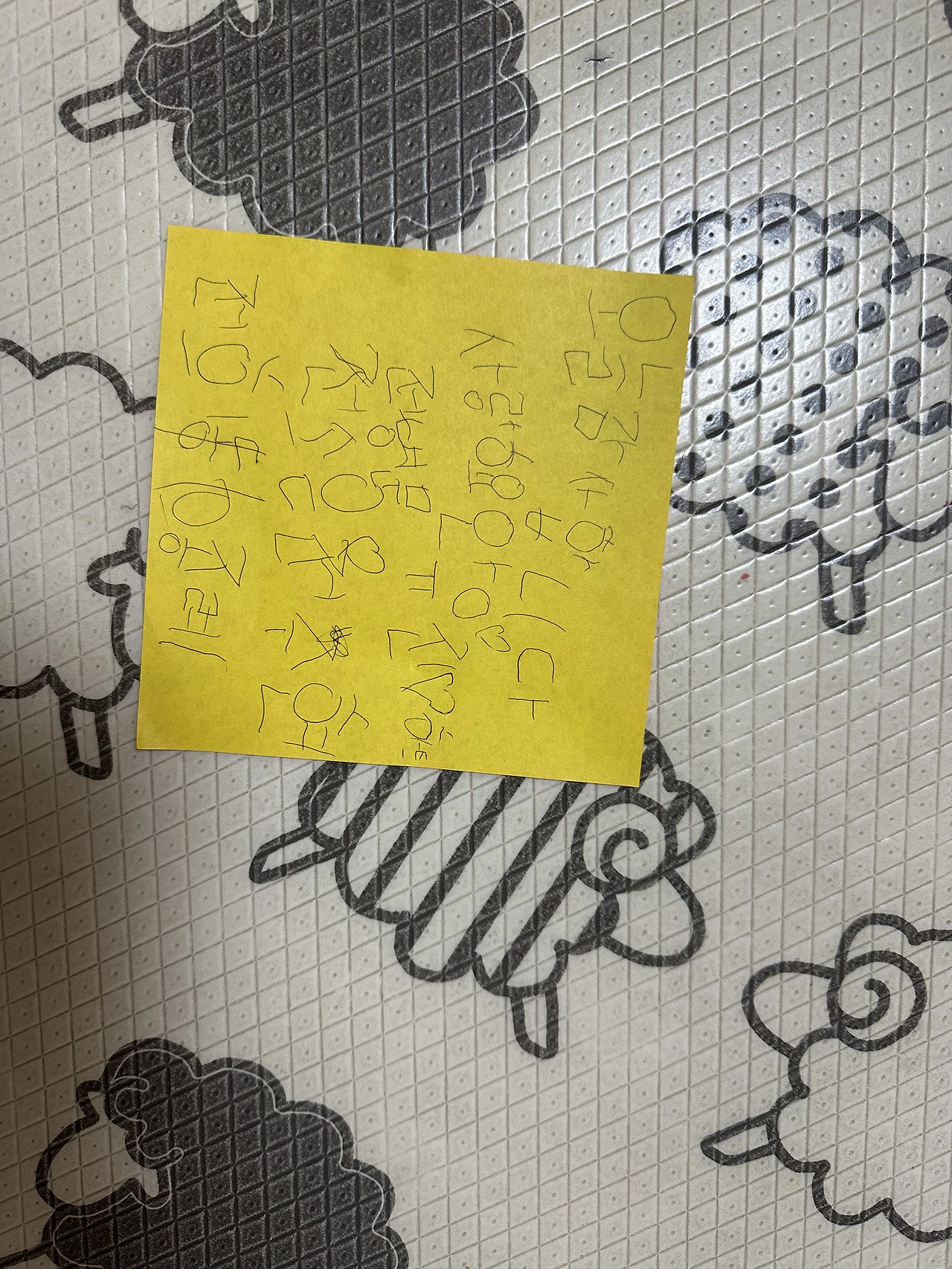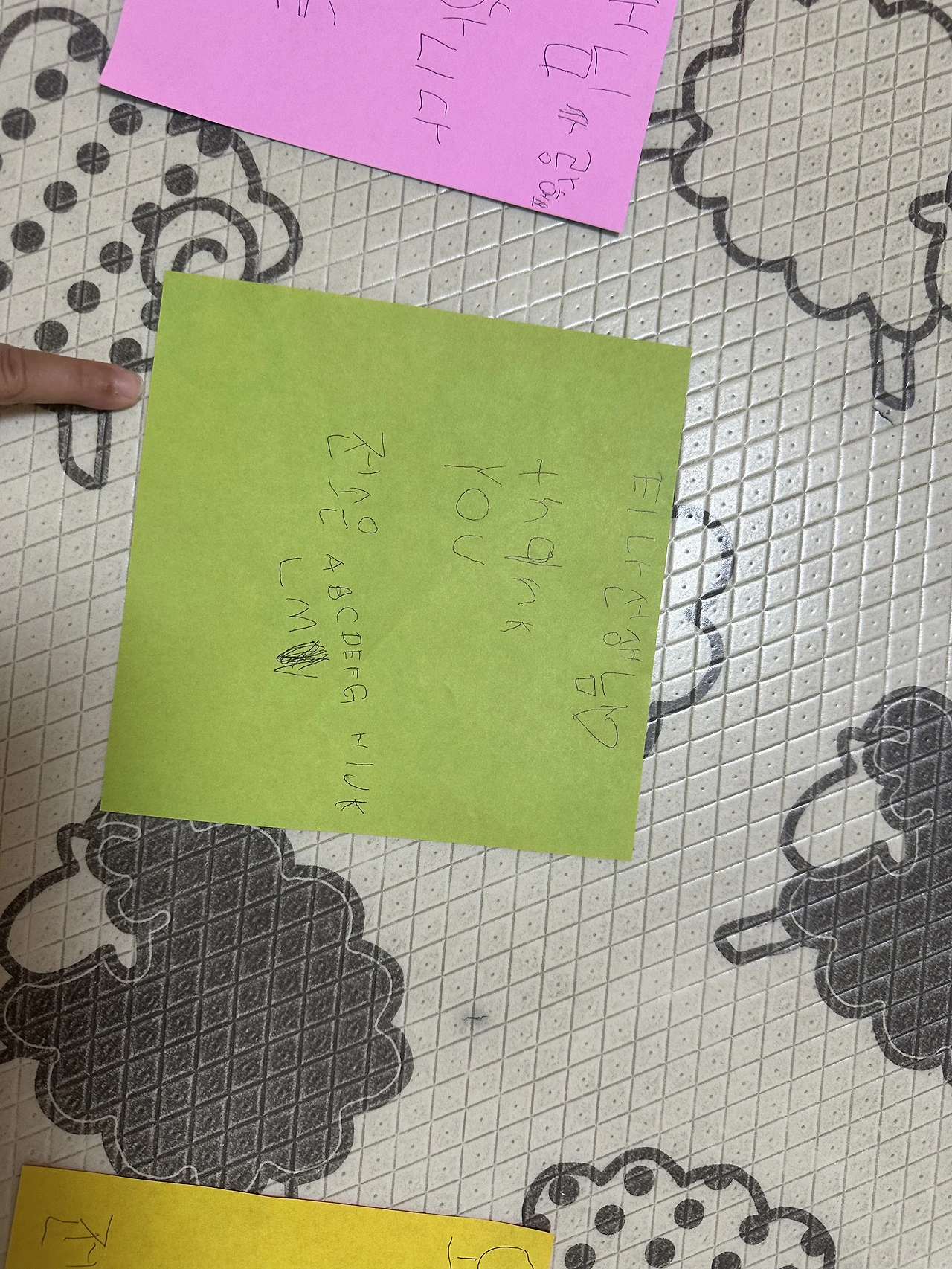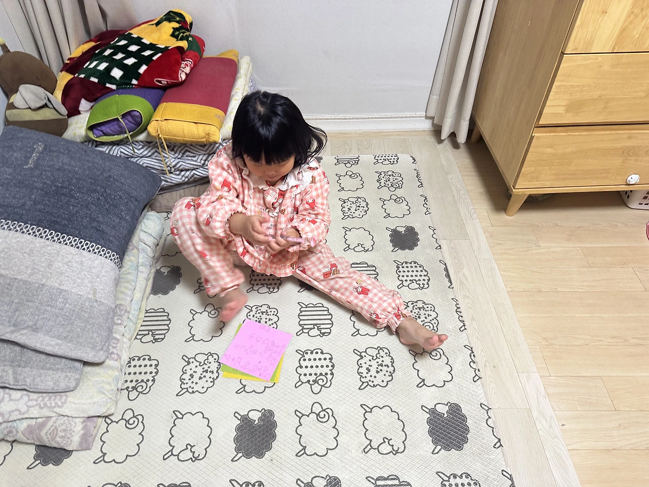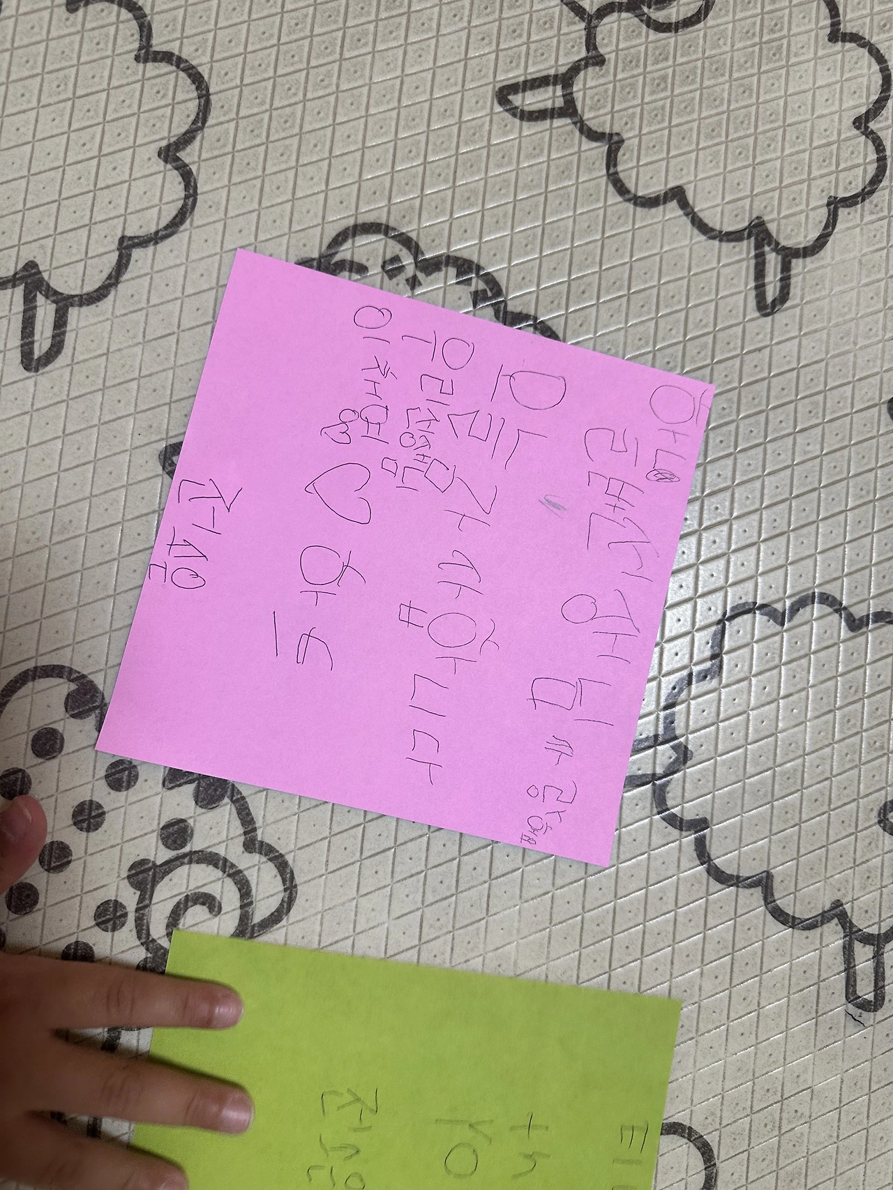 제 아비 오길 손꼽아 기다리며 늦밤까지 아니 잤던 딸을 보라. 이건 우리 가족, 이건 티나 선생님, 이건 하늘반 선생님 하면서 고사리손 꼭꼭 힘주어 쓴 편지가 귀엽고 애틋하고 소중하다.
