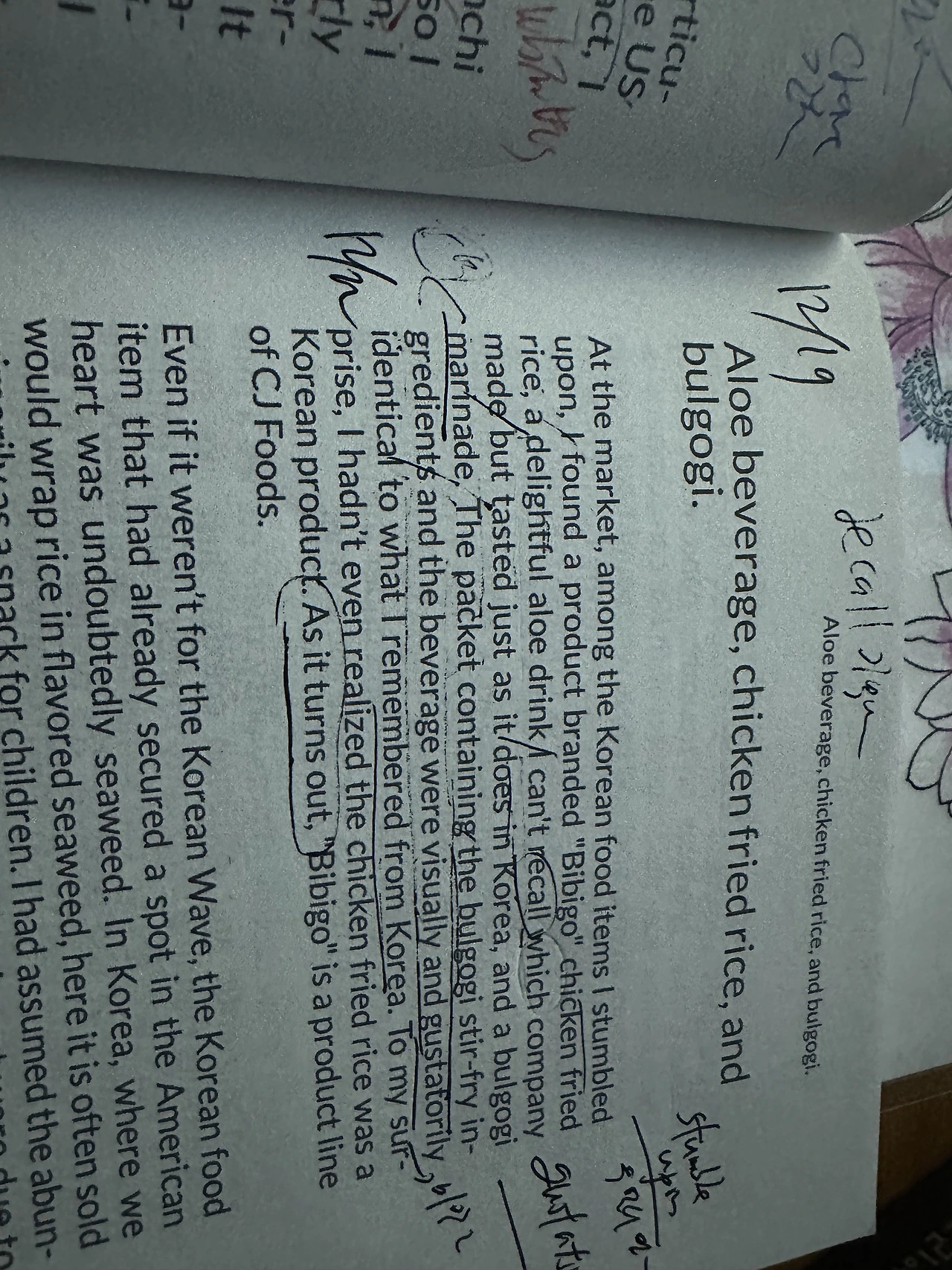재료를 볶아 휘저은 불고기와 담긴 봉지와 음료는, 겉으로 보나 미각적으로 보나 한국에서 내가 기억했던 맛과 비슷했다. 놀랍게도 나는 닭고기볶음밥이 한국 상품이란건 모르고 있었다. 알고보니, 비비고는 CJ 푸드 계열이었다.