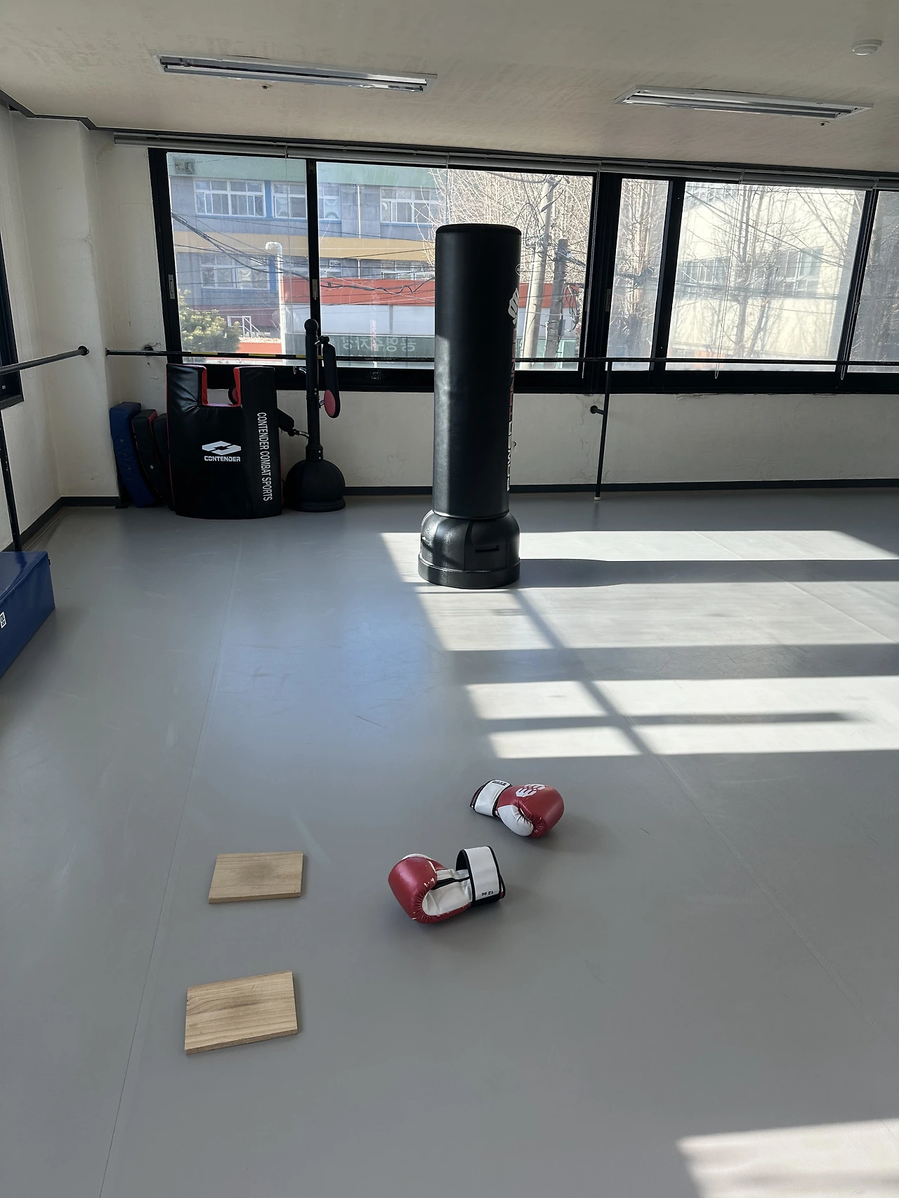 회사가 바빠 비교적 일찍 서둘러 와서 난방을 틀었어도 밤새 식은 도장 바닥의 냉기는 발끝에서 무릎을 찔러올라올만큼 시려웠다. 발을 동동 구르면서 주먹으로 헤비백을 우선 쳤고, 허리 아래가 풀리면서 발차기를 낮은데부터 연습했다. 몸에 열기가 돌아도 땀이 솟지 않았다. 다만 몸은 겨우 풀렸다. 두 사제들과 함께 짧게 굵고 훈련하고 나니 비로소 온몸이 땀에 젖었다.