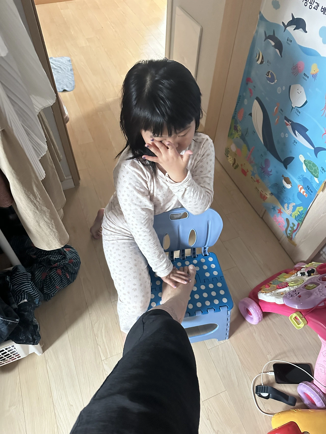 가장 심각한 문제의 중심이라면, 변기였다. 간헐적으로 열에 들뜨는, 아이는 물을 잘 마시지 않았는데, 그 때문인지 변이 무척 딱딱하게 굳었다. 보기만 해도 알 정도였다. 아이의 용변 뒤처리를 해주고 물을 내렸는데, 그 때부터 어째 물 내려가는 모양새가 영 심상치 않았다. 그래봐야 변하고 휴지인데 하면서 별 신경쓰지 않고, 아내가 출근 때문에 먼저 내려간 집안일을 정리하고 아이를 돌보았는데, 웬걸, 변기가 그날부터 계속 잘 내려가지 않았다. 아무 것도 없거나, 소변만 내릴 떄에는 잠시 차오르다 아주 천천히라도 내려가는데, 누가 큰일이라도 보고 나면 조금 꿀렁거리다 좀처럼 내려가지 않았다. 그래서 반드시 속칭 ’뚫어뻥‘ 이나 변기솔로 막힌 곳을 뚫어주면서 대야로 물을 내려가며 내려주어야 비로소 내려갔다. 평소 같았으면 이렇게 몇 번 하면 변기가 뚫려야 맞는데, 내가 본거라곤 아이의 굳은 변 뿐이었는데, 참 변기가 오래도 안 뚫렸다.
