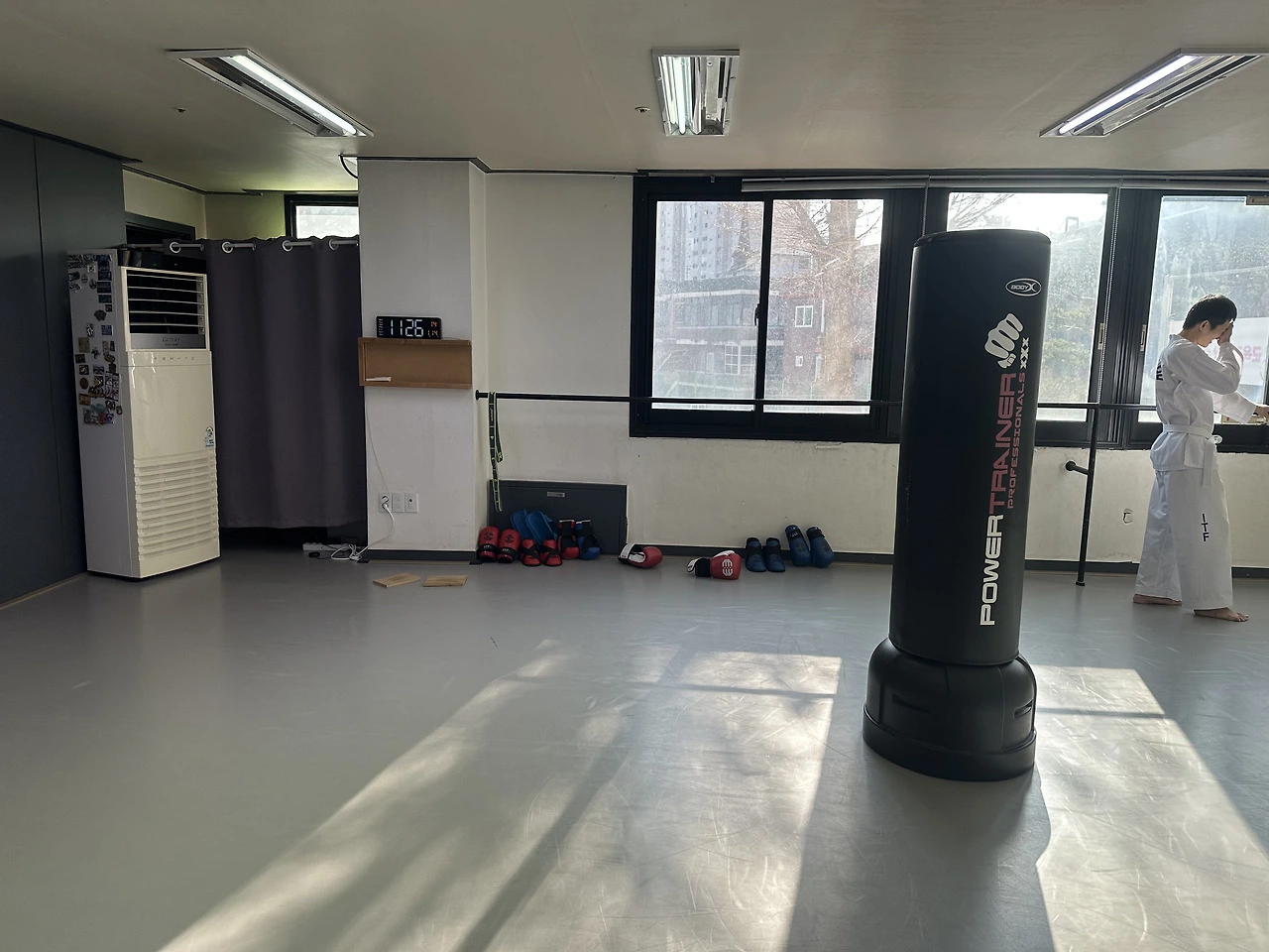 몸 데우기로 헤비백.치고 차기