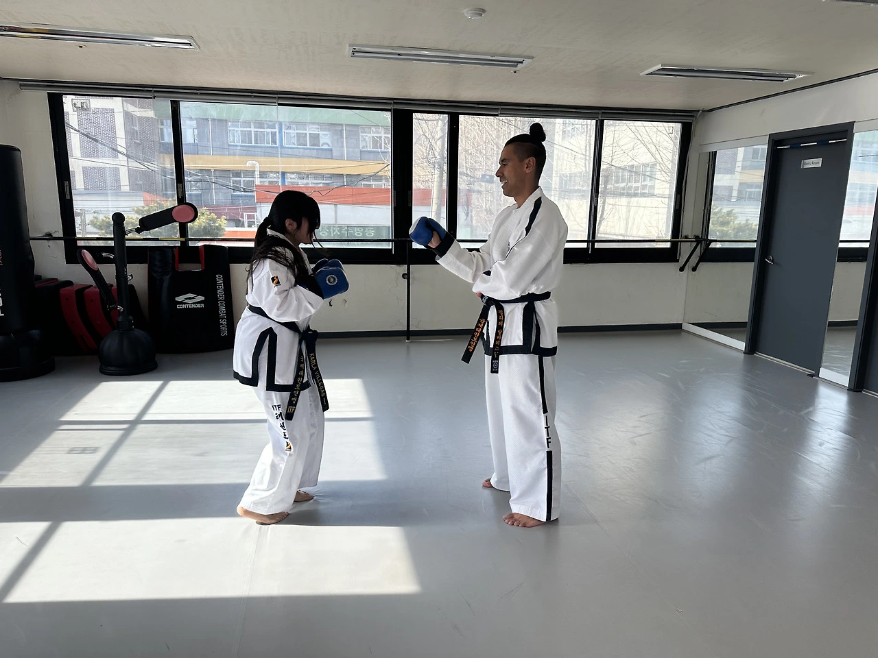 겸사겸사 연습도 하고, 태권도 지도법도 다시 점검할 겸 두 남녀가 온 모양이었다. 듣자하니 펠리페 사범님의 도장 유신관은, 수련생들이 100명이 넘고, 그조차도 입문을 기다려야 한다고 했다. 햐, ITF가 해외에서 인기 많다고는 들었지만, 그 정도라니 새삼 부러웠다. 한편으로, 출중한 실력과 지도력을 가지시고도, 세계에서 주목받기보다 우리 나라에 ITF를 완전히 뿌리내리게끔 하기 위해 애쓰시는 사범님께 새삼 또 감사를 느끼기도 했다. 어쨌든 오늘은 맞서기하는 금요일. 3월이면 포항으로 내려가서 본격 취업 준비에 박차를 가하는 우백호는, 요즘 낮밤이 바뀌어서 오전반을 잘 못 나오니, 안 그래도 아직 흰 띠 이신 점잖은 김 선생님 혼자 계시는데, 칠레에서 손님까지 오셨으니, 손목 아프다 어쩐다 할 계제가 아니었다.