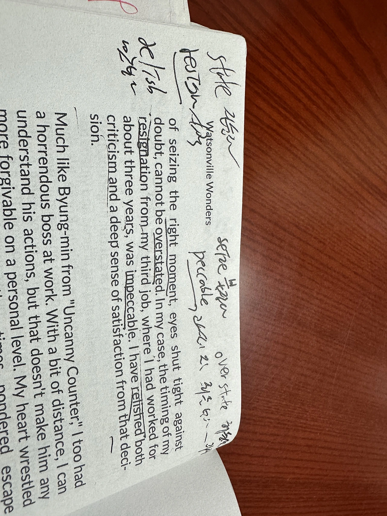 어떠한 상황으로부터 나를 격리시키는 일은, 기대했던 일보다 훨씬 더 어려울 수 있다. 그러나 때맞춰 올바른 순간을 잡아내는 일의 중요성은, 의심없이 두 눈을 질끈 감더라도, 도저히 과장할 수 없는 일이다. 3년 정도 일해왔던 3번째 직장에서, 퇴사를 결정하던 순간은, 정말 완전무결한 순간이었다. 나는 내 결정에 깊은 만족감과 비판적인 점을 동시에 맛보았다.