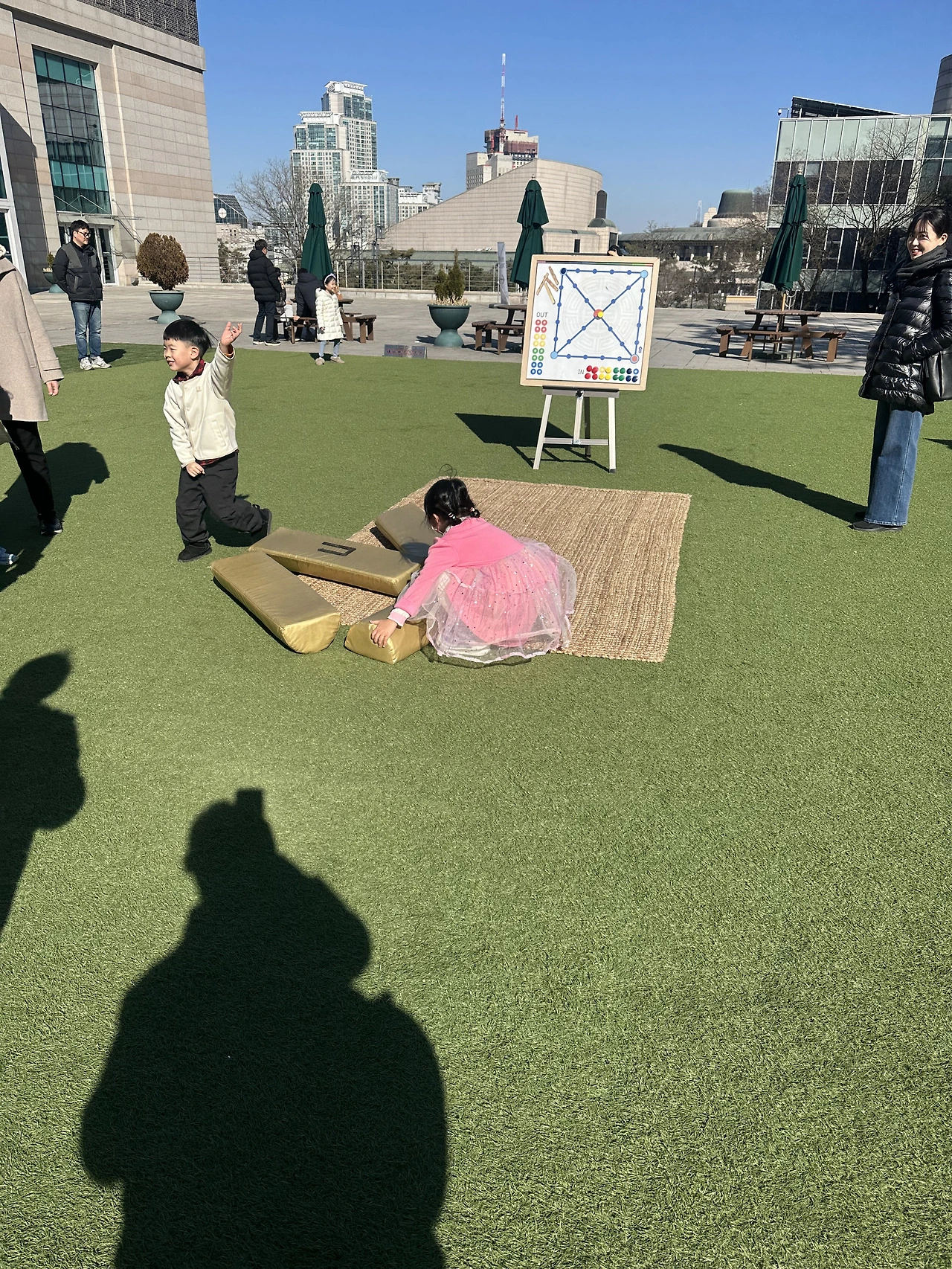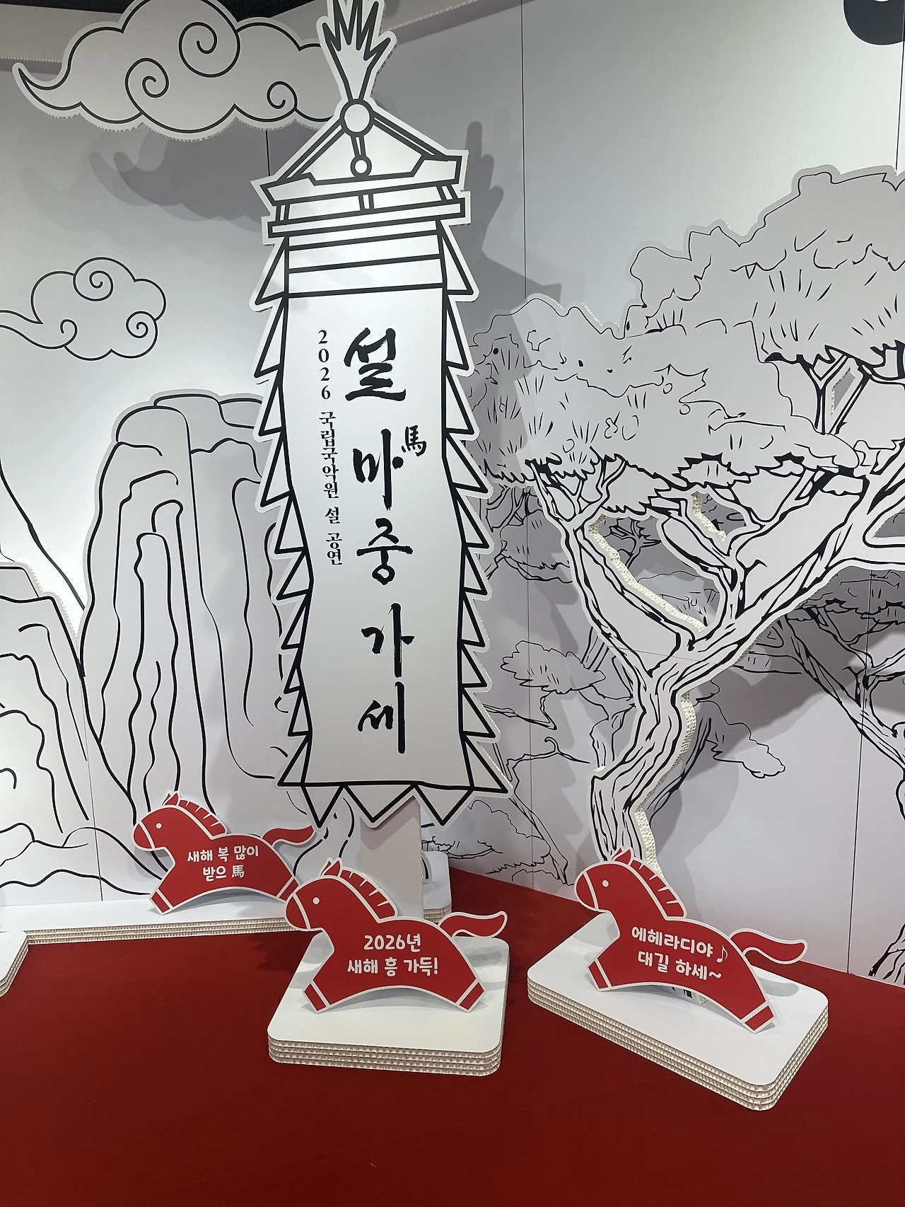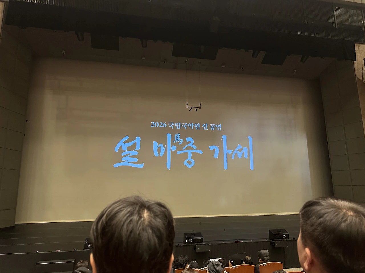 그러므로 아내가 국립국악원의 새해 맞이 공연 ‘설 마(馬)중 가세’ 를 온가족 다같이 보러 가자고 예매해왔을떄, 무려 1시간 30분짜리 공연이라는데 있어 나는 좀 놀랐다. 적벽가야 삼국지도 좋아하고, 사내들 좋아할만한 박진감 넘치는 장면이 많으니 들었지만, 정통 국악을 1시간 30분씩이나 앉아서 들은 경험은 처음이었다. 새해 첫날 국립국악원에는 사람이 제법 많았고, 게다가 외국인들도 꽤 있었다. 과연 K-culture의 덕인가 싶었다. 소은이는 할머니, 어머니와 널을 뛰고, 윷을 던지고, 투호놀이를 하며 즐거워했다. 아이와 적당히 놀다가 시간맞춰 온 가족이 공연보러 들어갔다. 공연장은 빈틈없이 가득 차 있었다.