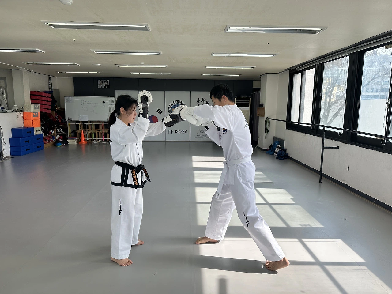원래 젊었을때 킥복싱을 하셨던 점잖으신 김 선생님은 날이 갈수록 몸에 근육이 붙으시고, 활력이 생기면서 자세가 견고해지셔서, 옛날의 실력을 많이 되찾으셨다. 원래도 신체 기능이 나쁘지 않으셧던 데다, 기본적으로 키가 크시고 팔다리가 길어 나는 사실 늘 긴 팔다리 너머로 선생님의 얼굴이나 상체를 노리는데 어려움이 있었다. 최근에는 찌르기를 적극적으로 뻗기 시작하시면서 나도 안면 타격을 허용하는 일이 잦아졌다. 선생님은 최근에 아주 조심스럽게 ITF태권도도 헤드기어 등의 호구를 좀더 착용하고 한다면 더 적극적으로 해볼 수 있을듯하다는 의견을 조심스럽게 내비치셔서, 나는 감사하기도 하고, 한편으로는 무섭기도 하였다. 여하튼 선생님은 긴 팔다리를 적극적으로 활용하시면서, 물론 너무 섣불리 무릎을 올리셔서 가끔 다리 사이(!)나 엉덩이를 걷어차는 변칙적인 발차기를 구사하시긴 하시지만, 규칙없이 싸운다면 그 또한 선생님이 잘 싸우신 것이다. 나는 날이 갈수록 나보다 신체 기량이 월등한 선생님을 상대하기가 버거워서 더 많은 기술을 쓰려고 연습중이다.