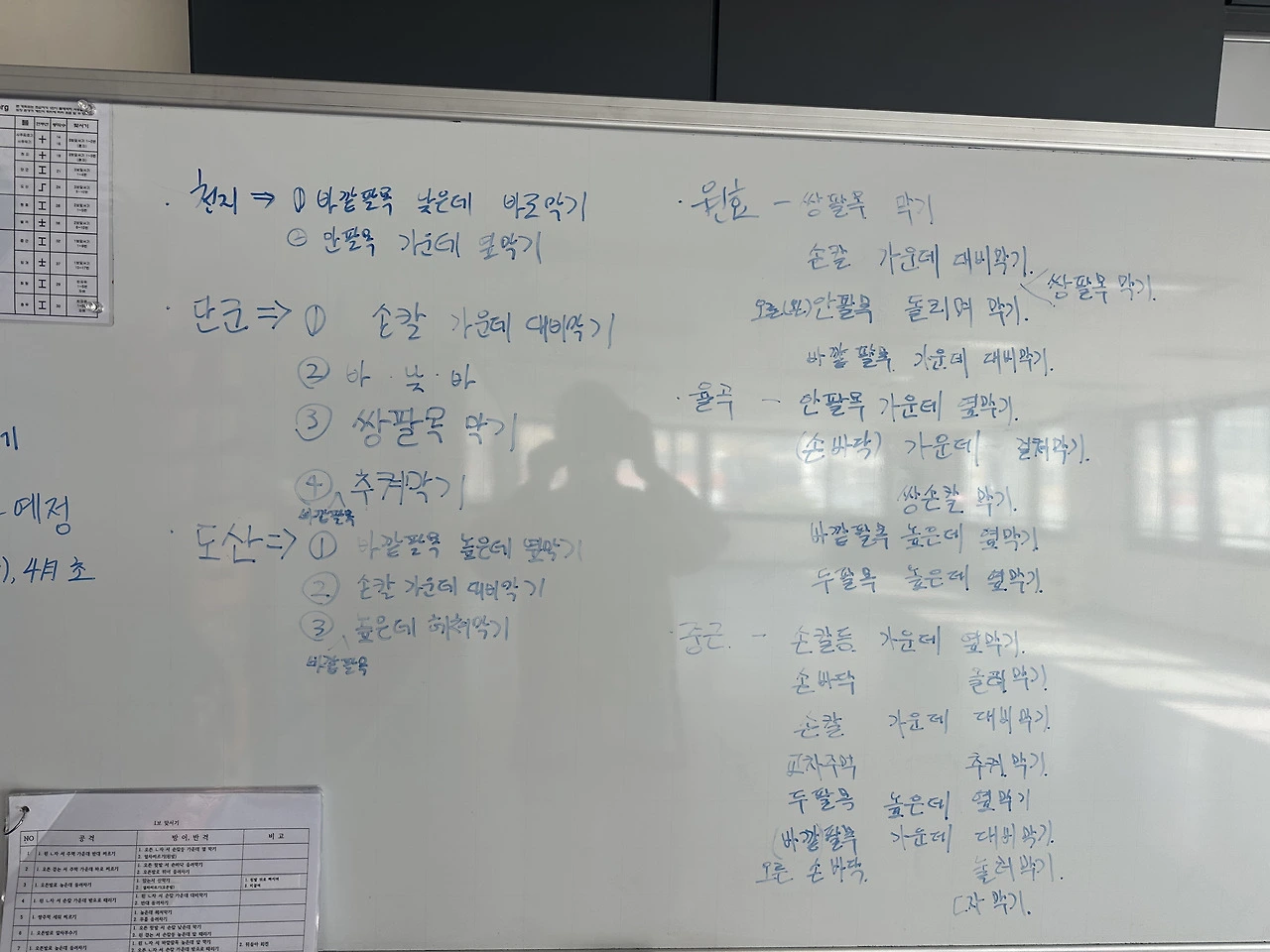 나이들수록 남는 시간에 오히려 맞서기 기술 연습에 집중하느라 틀 연무의 시간이 줄고 있다. 하루, 한 주, 한 달의 여유시간은 늘 정해져있는데, 실력도 재능도 없는 내가 본업도 아닌 태권도에 하루종일 시간 투자만 하고 있을 순 없다. 그러므로 하루의 한정된 연습 시간에, 어떤 연습을 하겠다 마음 먹는다면, 다른 연습의 비중은 당연히 줄어들수밖에 없다. 맞서기 연습은 틀에 비하면 간편하고, 횟수를 조절해가며 채울 수 있으며, 무엇보다 적은 시간에도 큰 운동 효과를 얻는다. 반면, 틀 연무는 비교적 생각을 덜하고 몸에 밴 동작만 점검해가면서 연습하면서 천천히 태권도에 빠지는 듯한 연습이지만, 정확한 호흡과 자세를 늘 유지해야 하고, 연습하다보면 어렵기는 마찬가지이며, 무엇보다 하루 정해놓은 연습량을 다 채우지 못하면, 다음 틀 연무 떄 그만큼 더 늘려서 해야하므로 부담을 주게 된다. 이런 점이 어렵다. 그래도 안할 수 없기에, 무엇보다 무공의 요체를 모아놓은 연습은 틀 이기에, 오늘도 부지런히 연습했다.