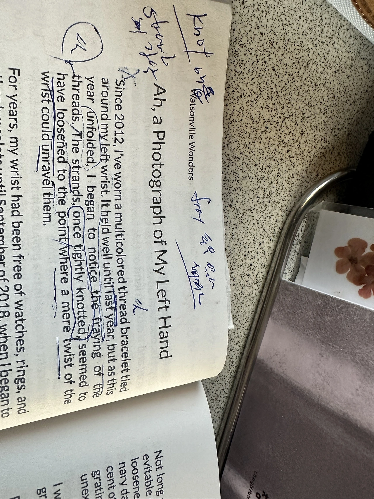 2012년부터 나는 여러 색실을 꼬아만든 매듭 팔찌를 왼손목에 차고 다녔다. 작년까지는 잘 차고 다녔지만, 올해부터 잘 펴지 않아서, 닳고 해어진 실들이 눈에 띄기 시작했다. 한번 단단히 매듭진 가닥은, 풀리지 않도록 손목을 감싸 묶어둔 곳부터 서서히 풀어지는듯해였다.