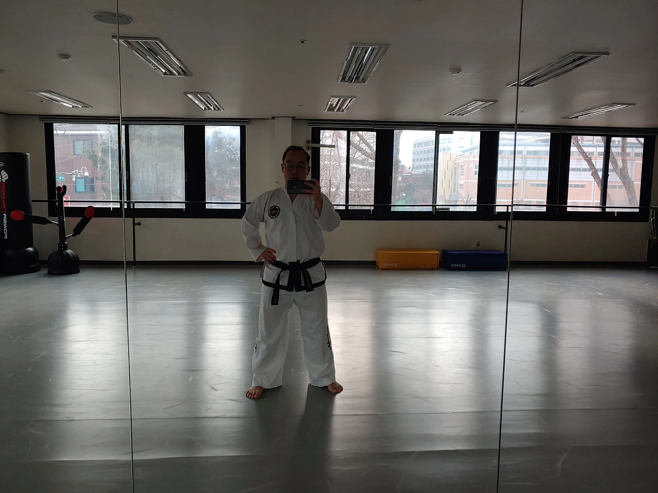 때가 되었는지, 아니면 최근 몇 달 동안 집에서라도 거르지 않고 하체 유연성과 근력을 기른게 도움이 되었는지 이제는 그 원수같던, 악명 높은 고당 틀을 어쨌든(!!) 할 수는 있게 되었다. 물론 옆차찌르기는 아주 낮고, 상체는 아주 뒤로 누우며 반바퀴 돌리는 발은 휘청휘청 불안하다. 말미의 다리 벌려 차기 도 어림없다. 그러나 또 하다보면 언젠가 되겠지, 겨우 출발선에 또 섰다.