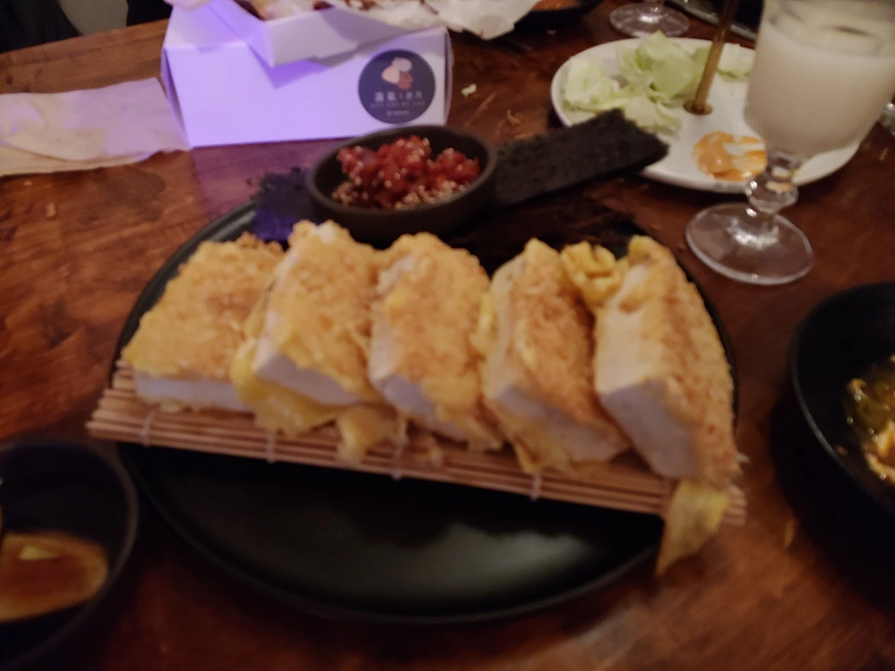 아내의 표현을 빌리자면, 길이 있을 것 같지 않았던 골목들을 짚어 돌고 돌다보니 구석진 곳에 작은 가게가 하나 나왔다. 크기도 작고 탁자는 흔들리고 화장실도 좁은데다 내가 아는 대포집 같은 곳이 아니라 대학생들 잘 가는 피맥집 같은 분위기였다. 핑거푸드로 생양배추를 썰어 머스타드 소스를 뿌려주길래 이게 뭔 막걸리집인가, 하고 있는데 온갖 막걸리를 다 모아둔 정성은 그렇다치고 음식이 정말 맛있었다. 김치와 콩나물을 넣어 끓인 차돌 전골이며 바삭하게 구워낸 감자전, 달달한 육회, 누룽지를 뿌려 구운 두부, 채끝 육전까지 참말로 주인장의 실력을 능히 짐작하고 남음이 있었다. 여대 앞이다보니 양이 적고 치즈가 가끔 들어가서 아쉽긴 했으나 큰 흠은 아니었다. 이 날만 기다려온 나는 막걸리도 모자라서 이강주 19도짜리까지 더해 마셨다. 내가 마시던 것에 비해 도수가 낮아 뒷맛이 쓰고 계피 향이 강하게 났지만 가릴 이유가 없었다. 즐거웠다.