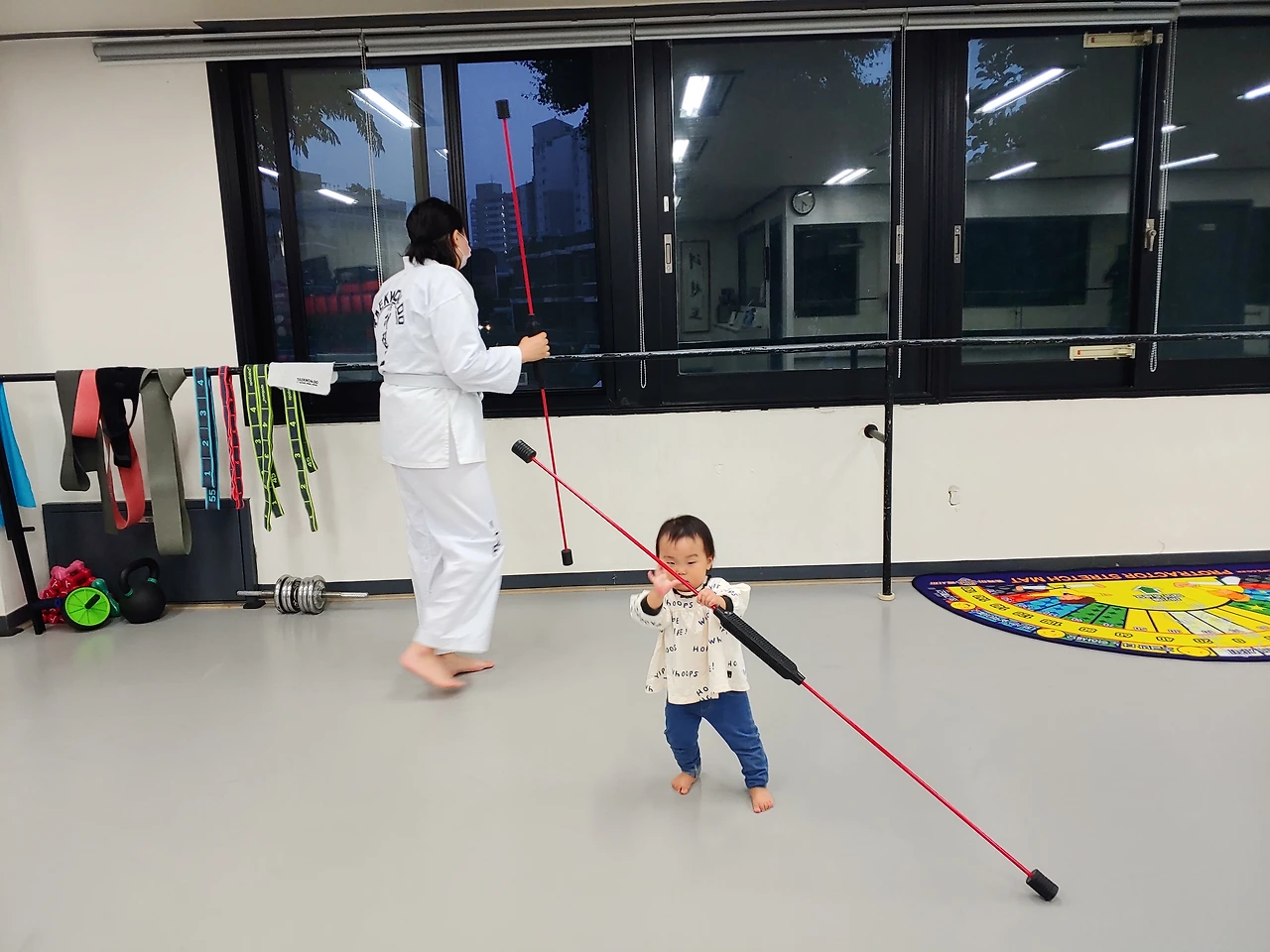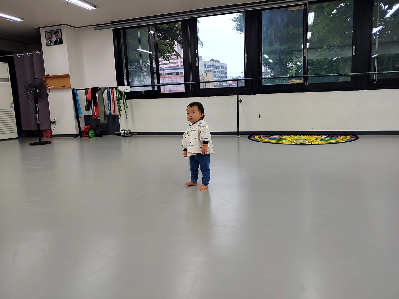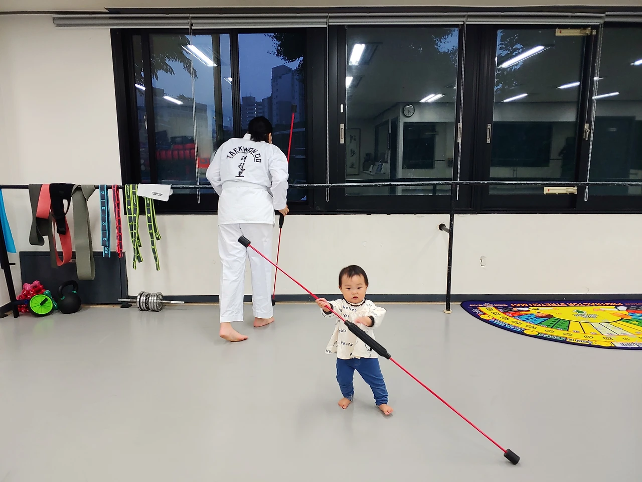 아내가 혼자 저녁에 애 보며 집 지키기 심심하다 하여, 사범님 허락받아 처자식 함께 도장에 갔다. 불충분하나마 틀과 발차기 연습, 정권단련 팔굽혀펴기 하는 동안 딸은 도장에서 뛰놀고, 아내는 뒤쫓느라 진을 뺐다. 사범님은 그래도 보기 좋다시며 하하 호호